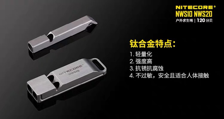 NITECORE奈特科尔NWS10 NWS20单双孔求生哨高分贝户外救生口哨子