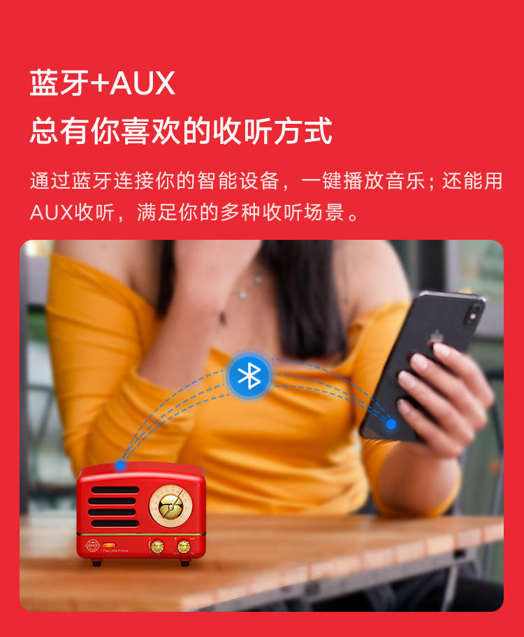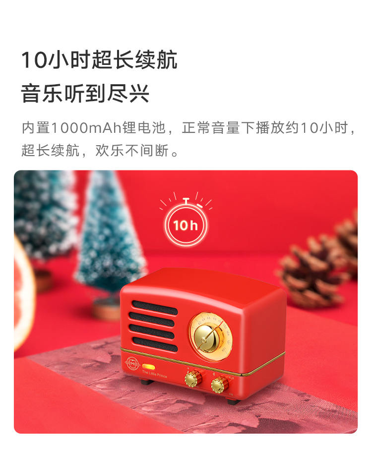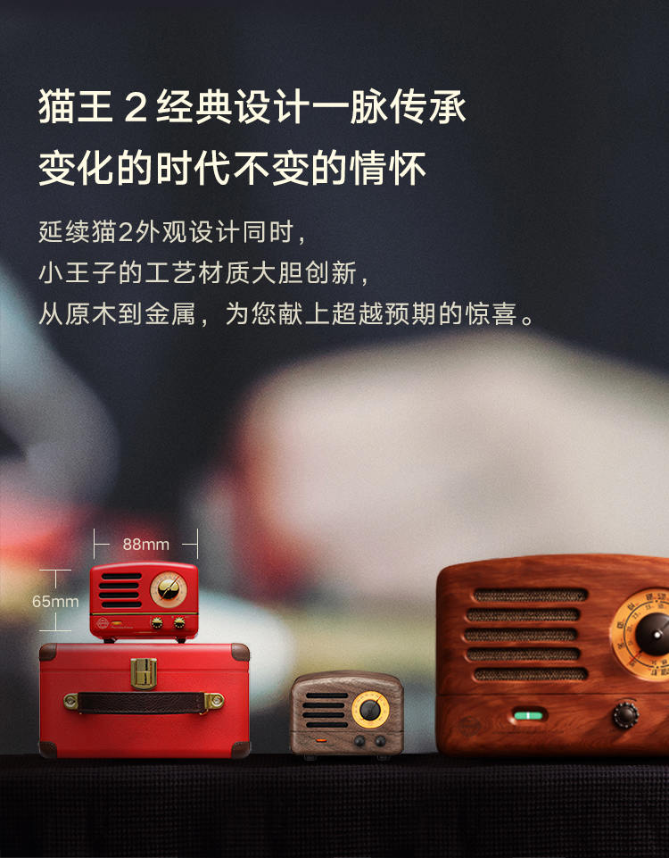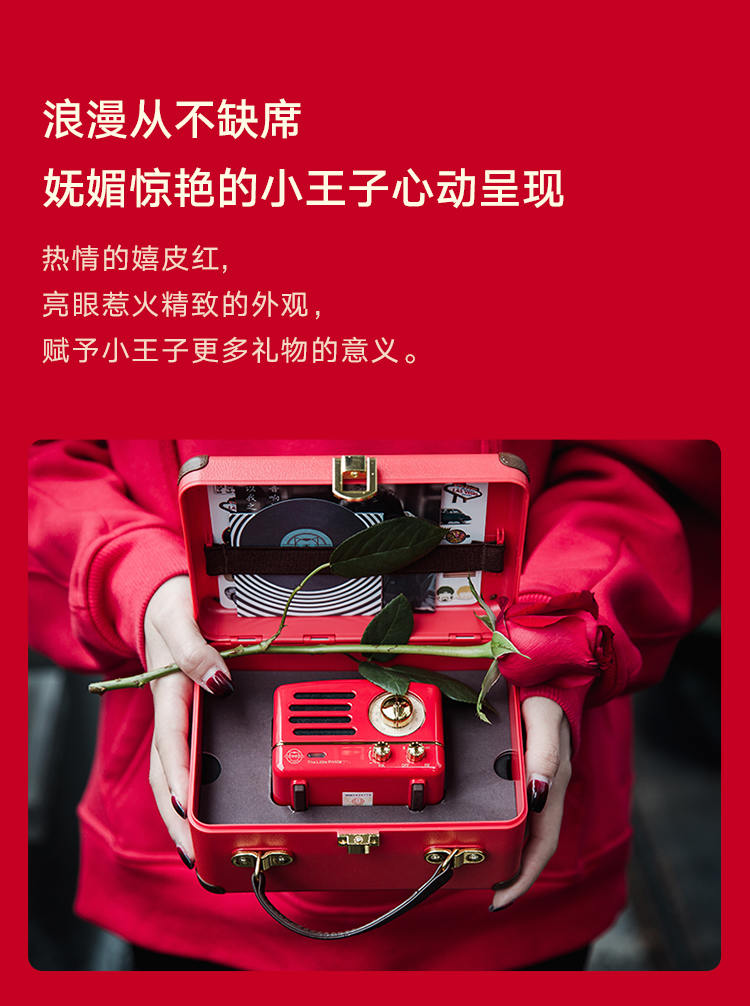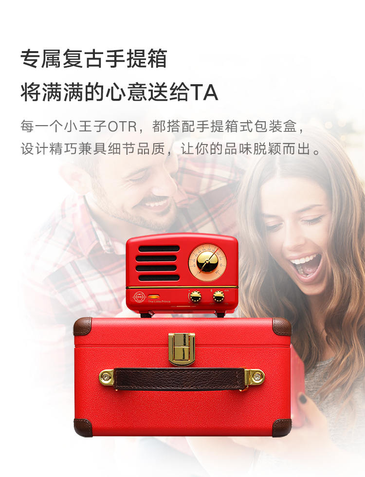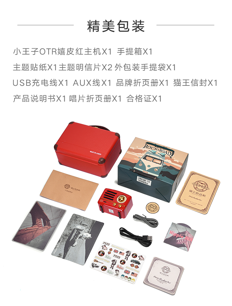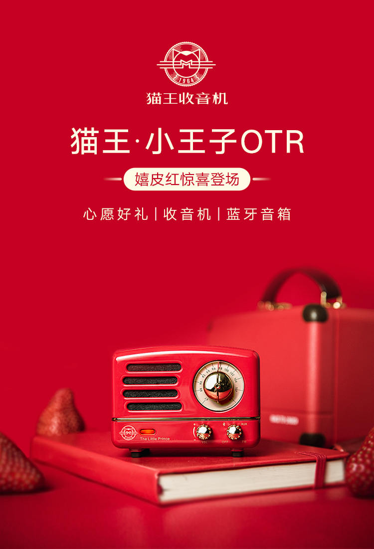 猫王收音机 小王子OTR 无线便携蓝牙音箱迷你小音响可爱复古音响家用低音炮创意礼品收音机 嬉皮红
