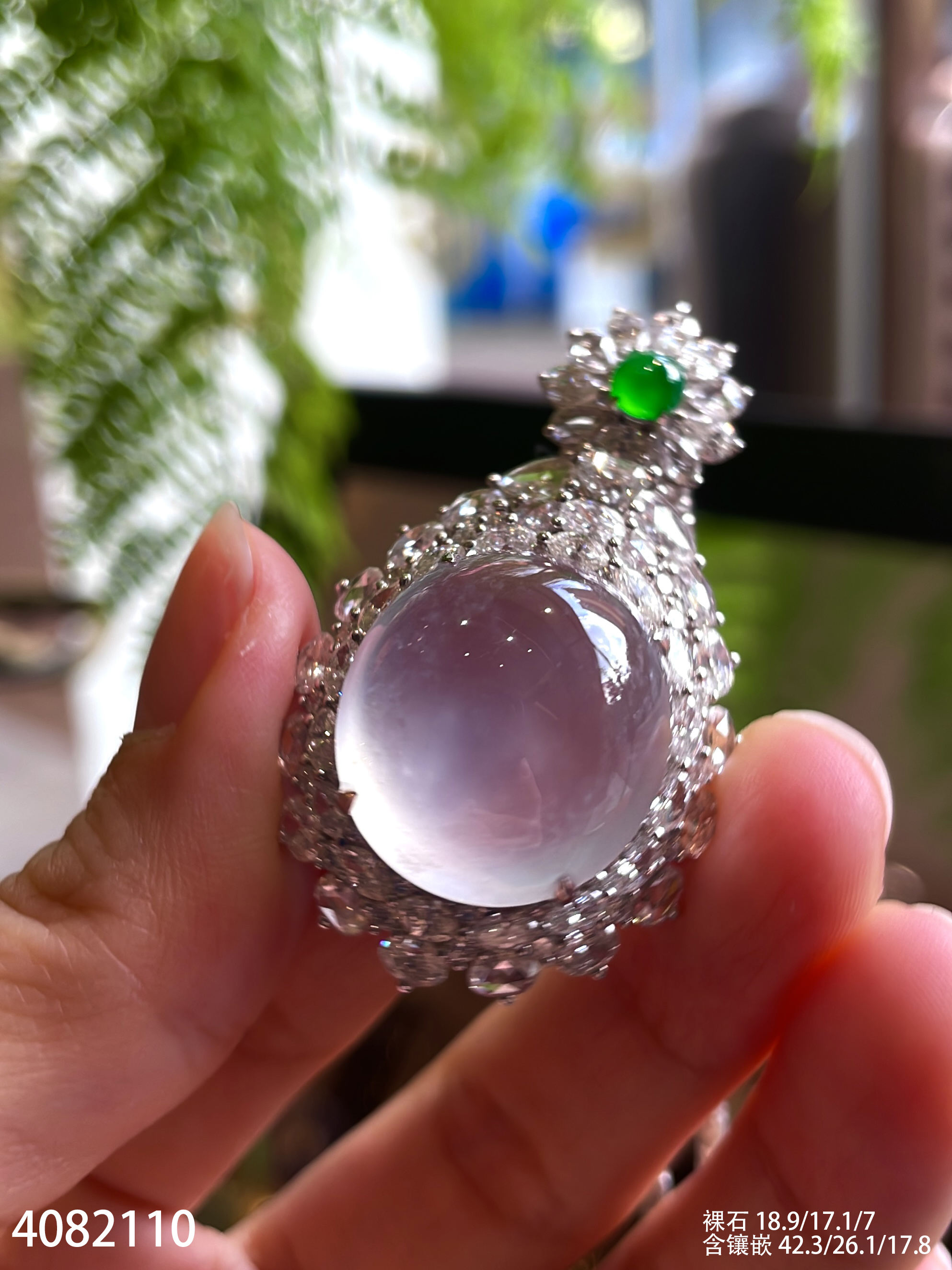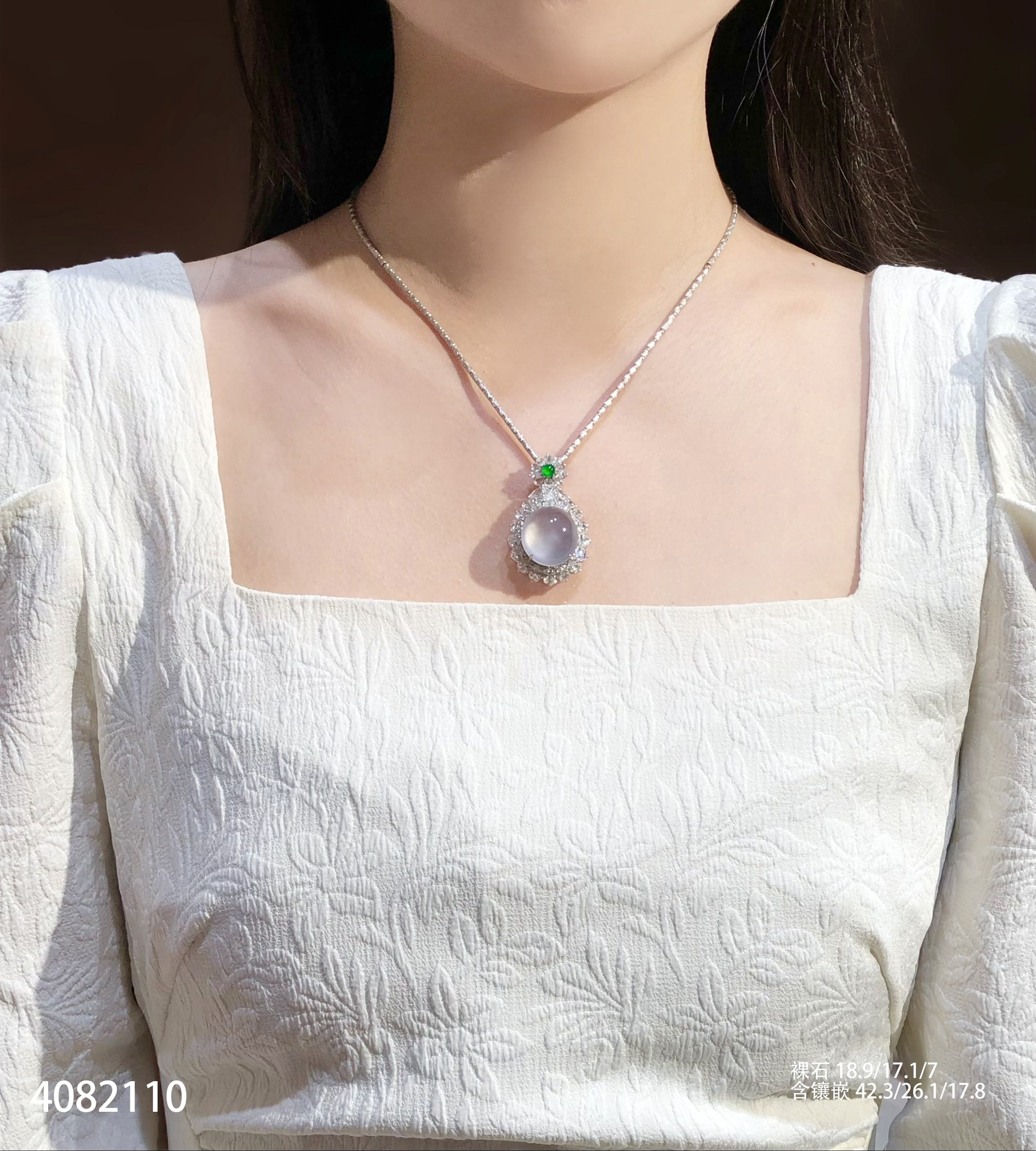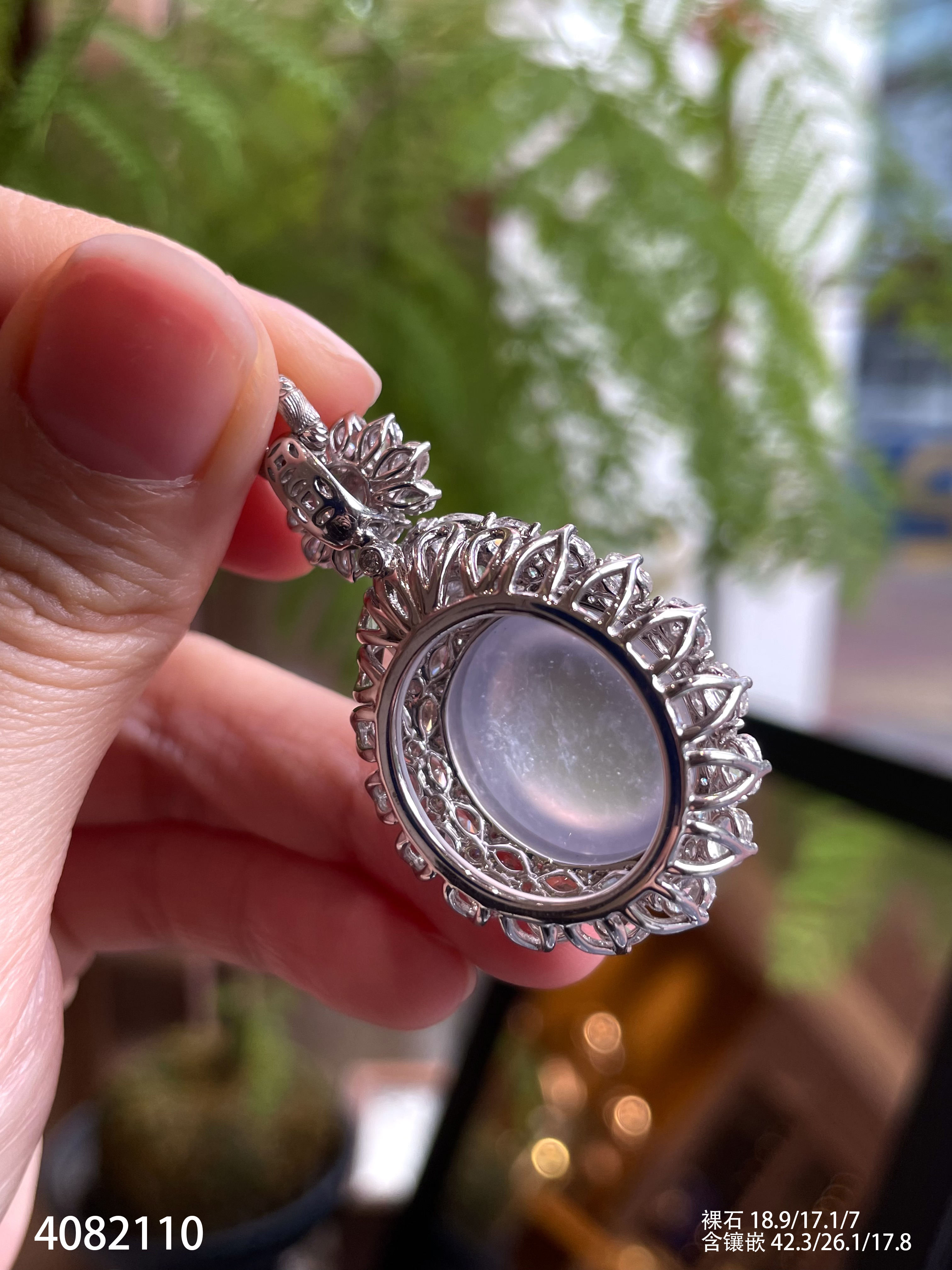 纯白玻璃种蛋面吊坠【4082110】具体价格微信咨询