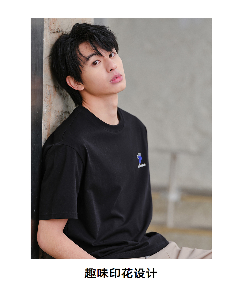 gxg.jeans男装2024年夏季热卖双色趣味印花设计圆领短袖T恤J24D442027