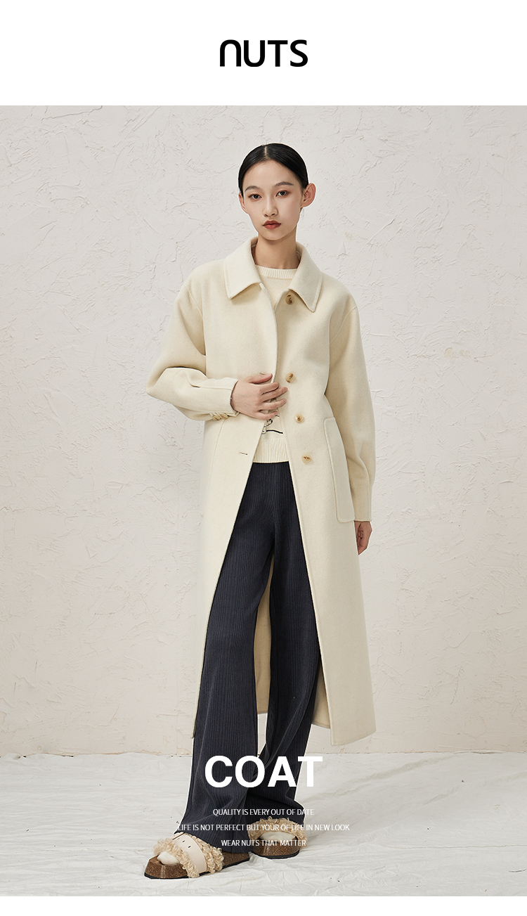 NUTS冬时尚气质设计感百搭简约显瘦双面毛呢大衣外套女342152047