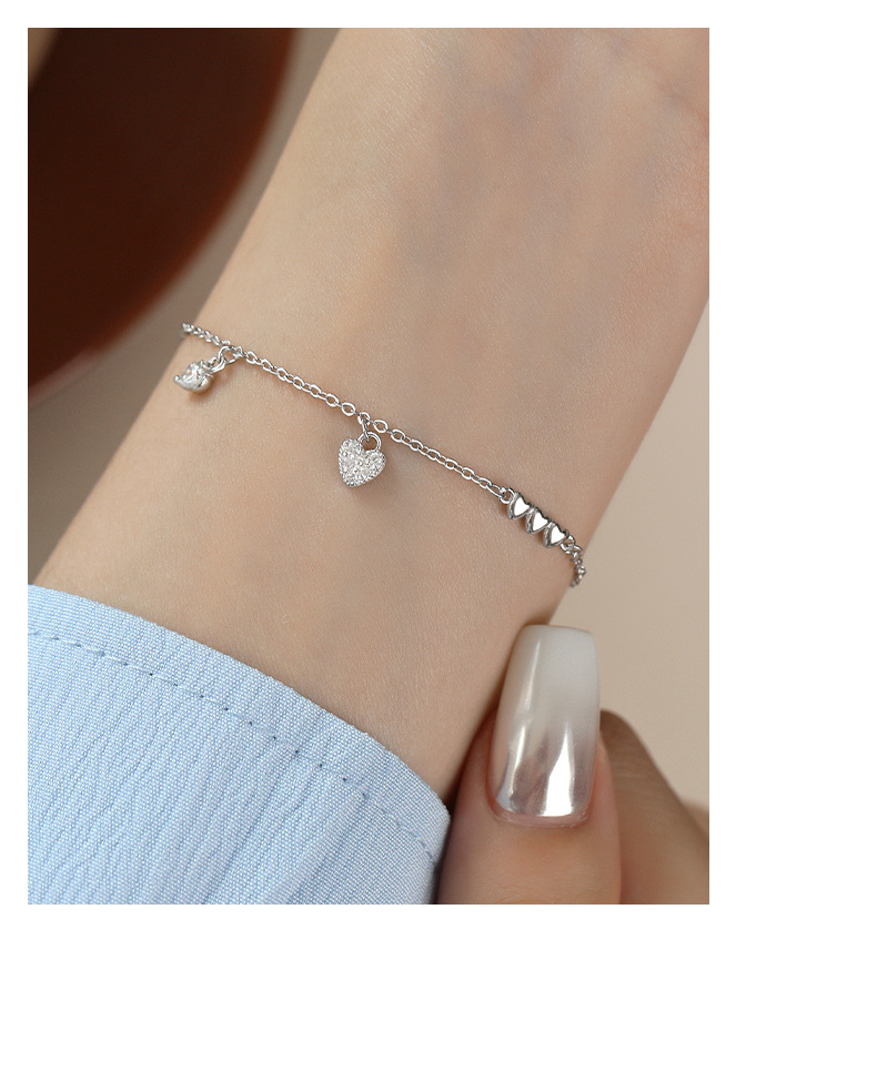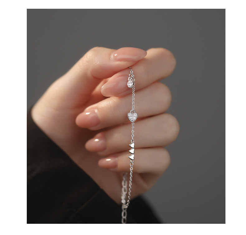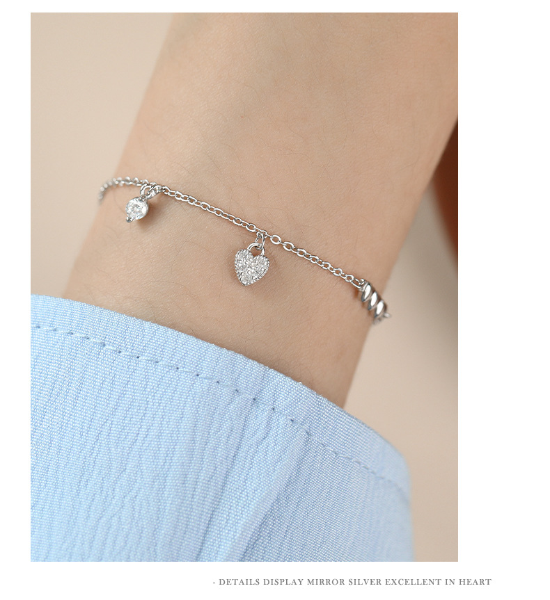 【爱意流淌】S999纯银光面爱心锆石手链【YXS-L1144】 商品图3