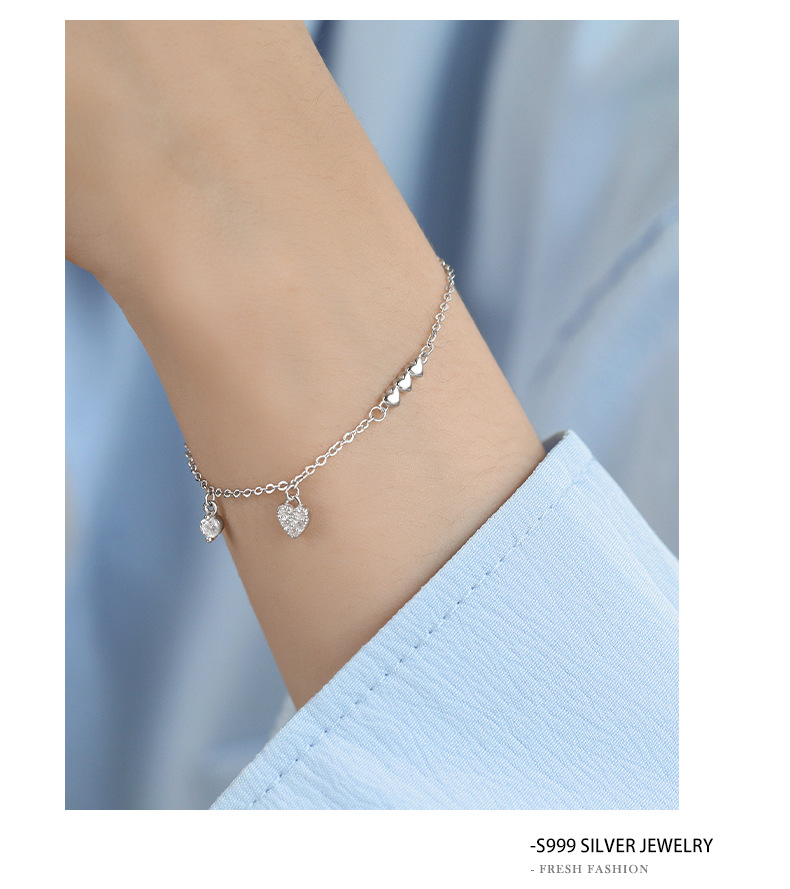 【爱意流淌】S999纯银光面爱心锆石手链【YXS-L1144】 商品图2