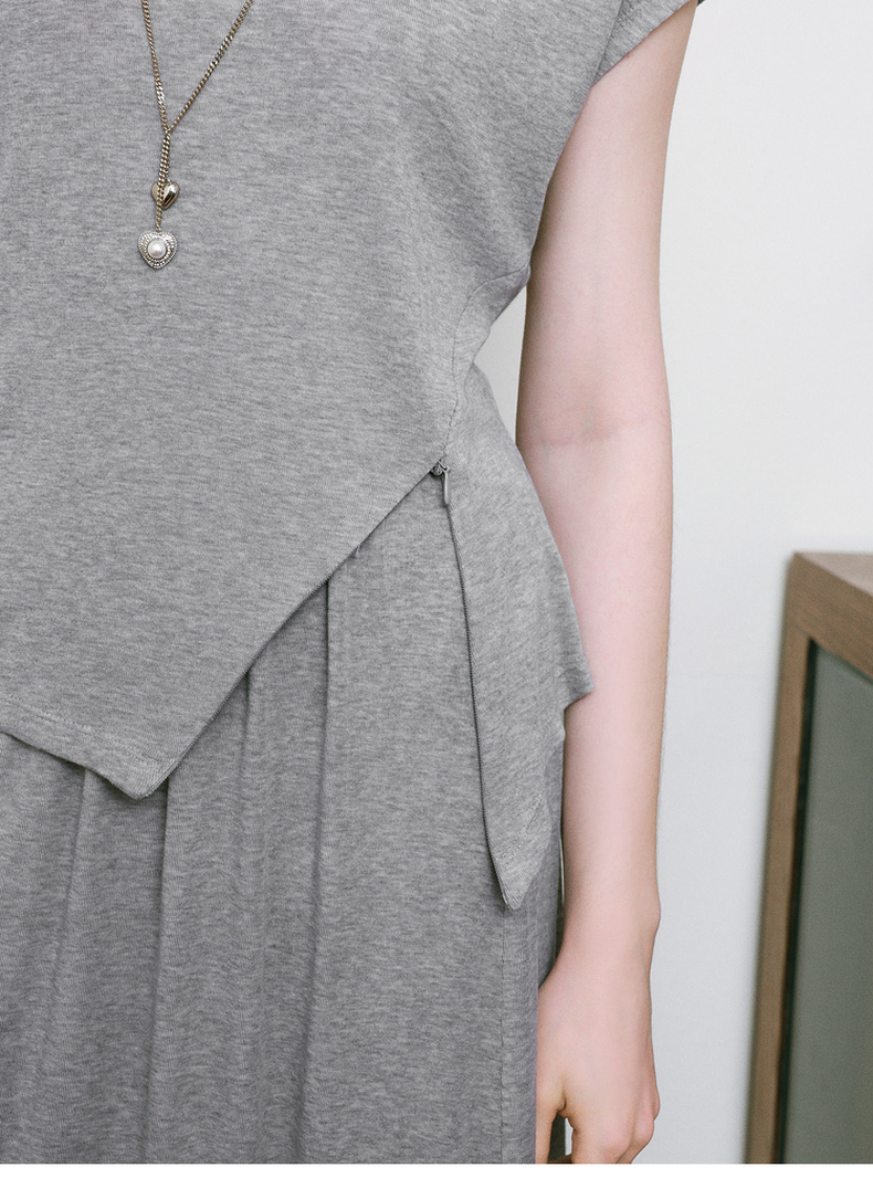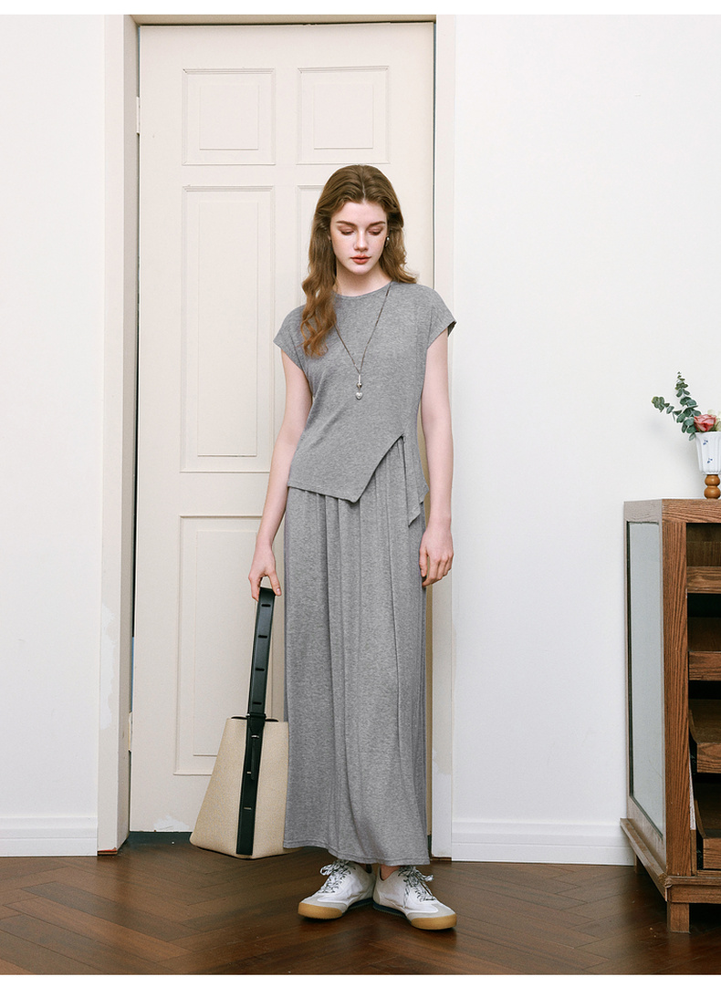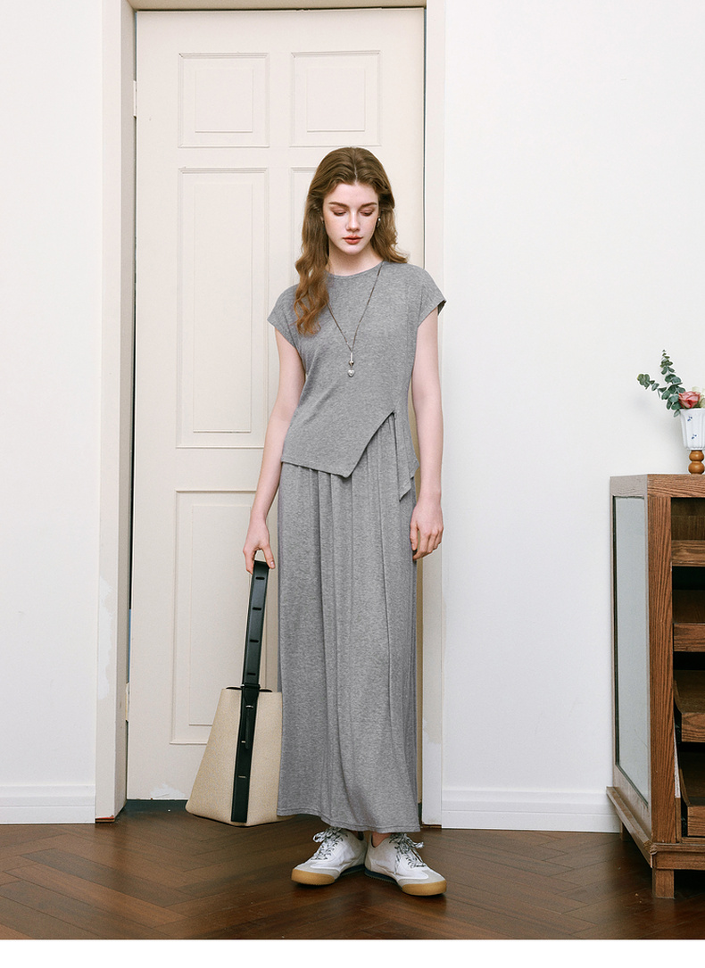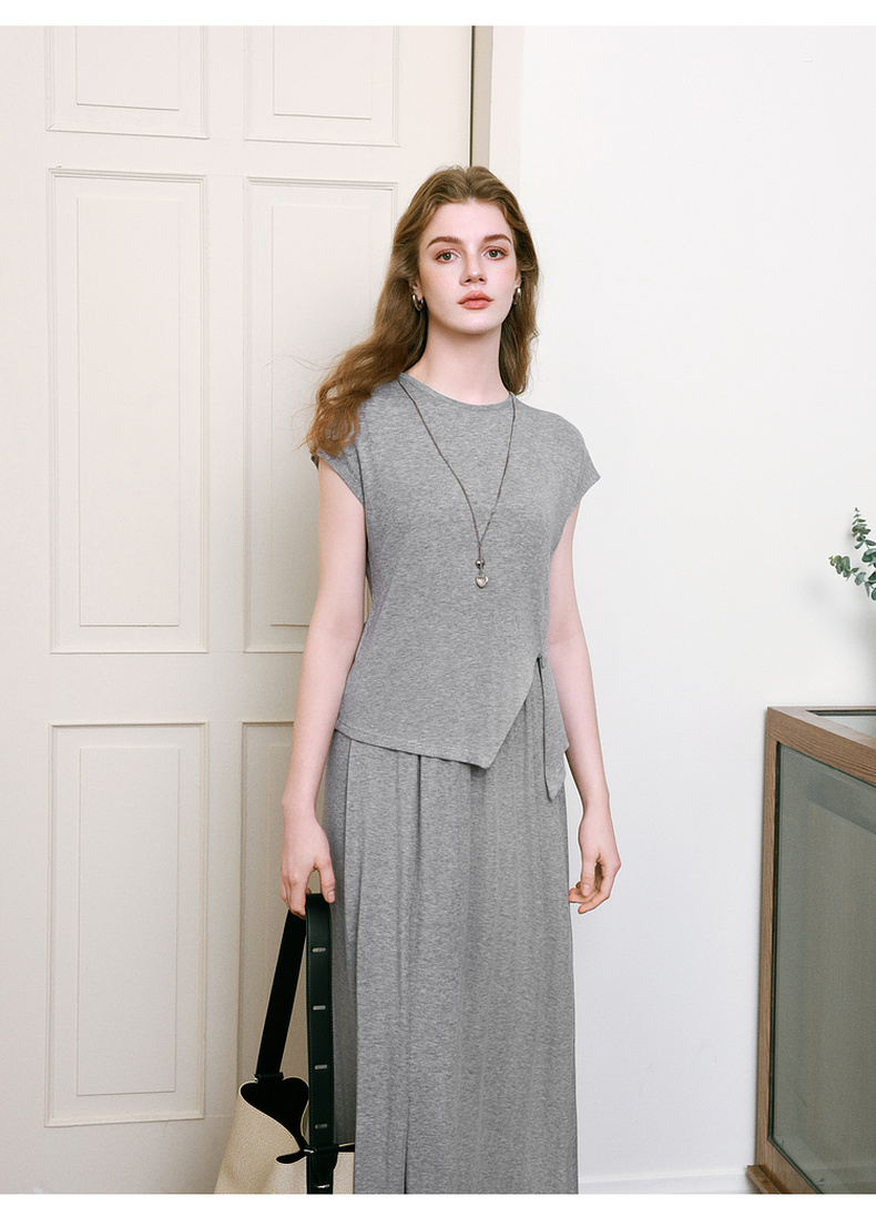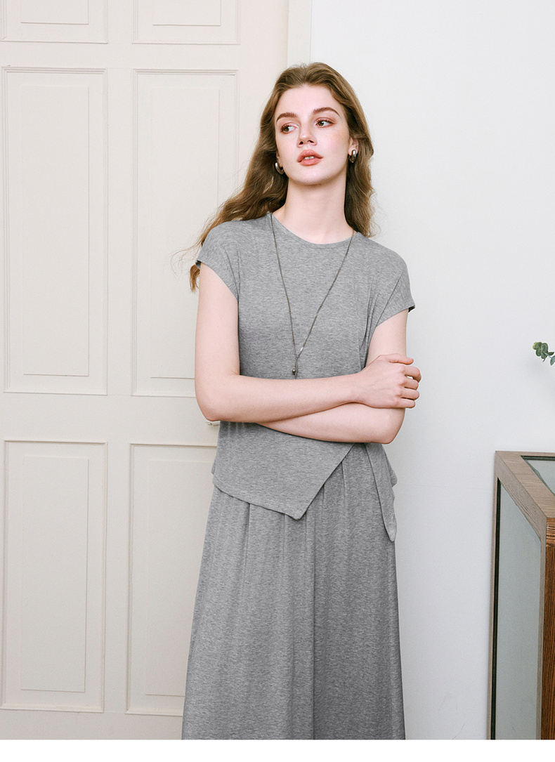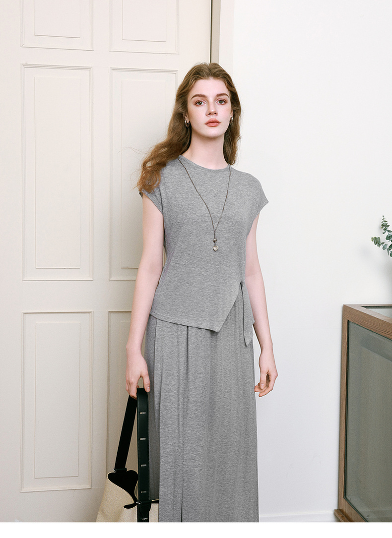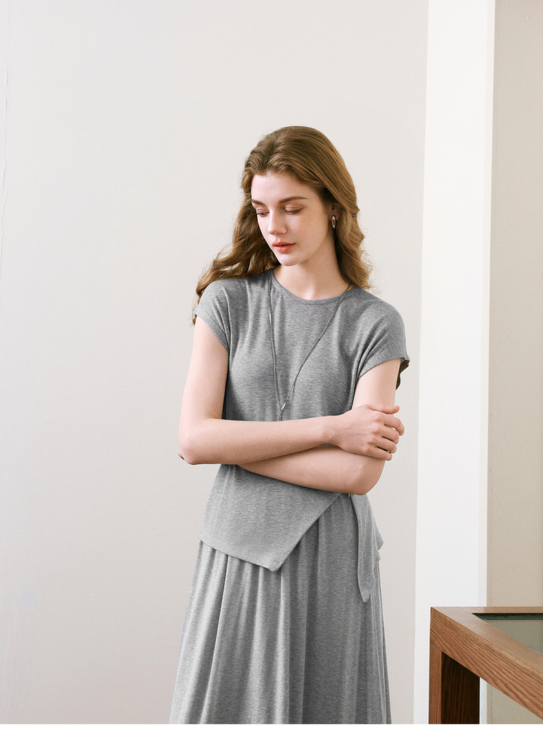 【商场同款】诗凡黎诗凡黎天丝面膜T恤2025夏新款不对称上衣女3G5200421