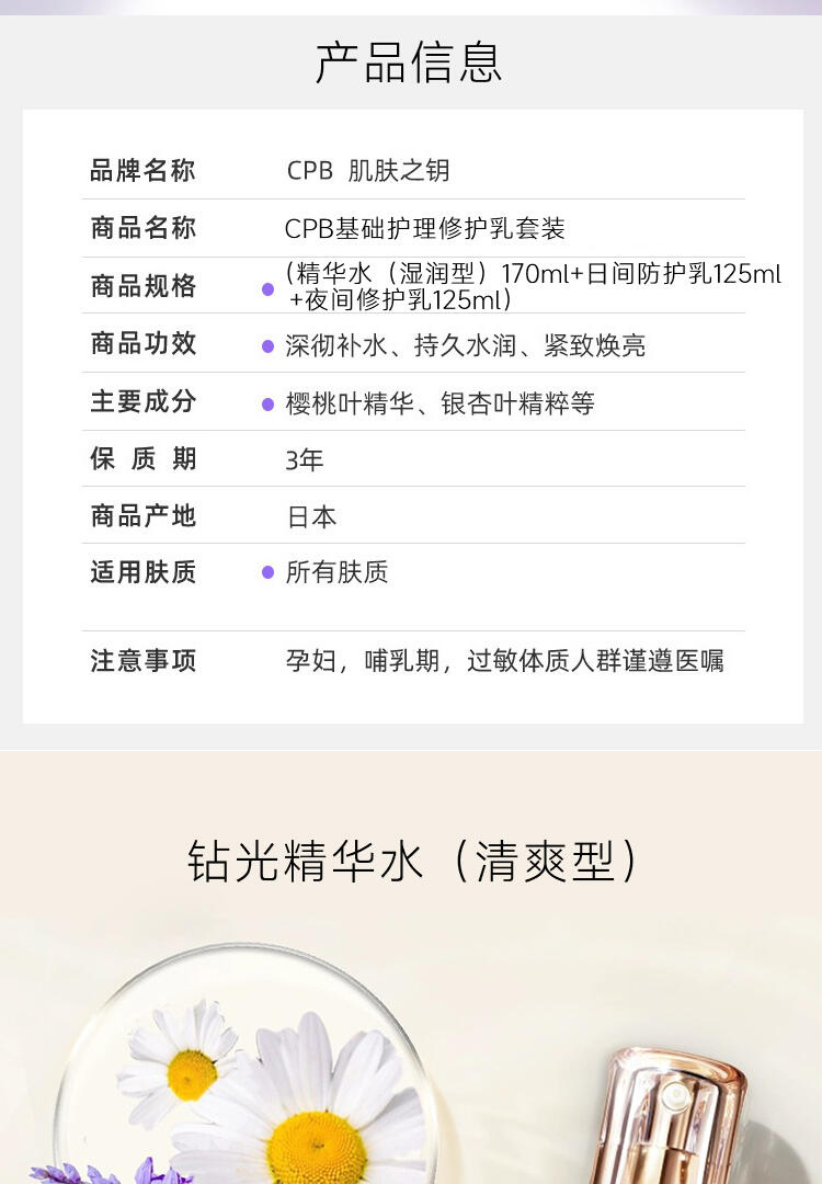 【跨境】CPB肌肤之钥钻光水乳三件套 精华水170ml+ 日间乳液125ml+晚间乳液125ml(效期:2028.09)