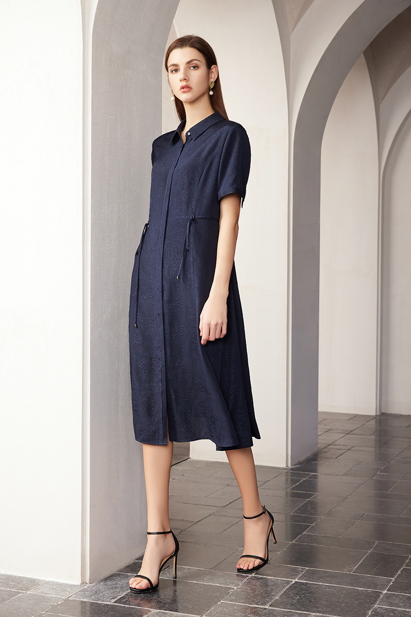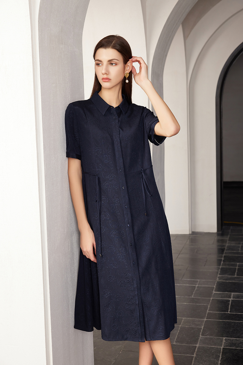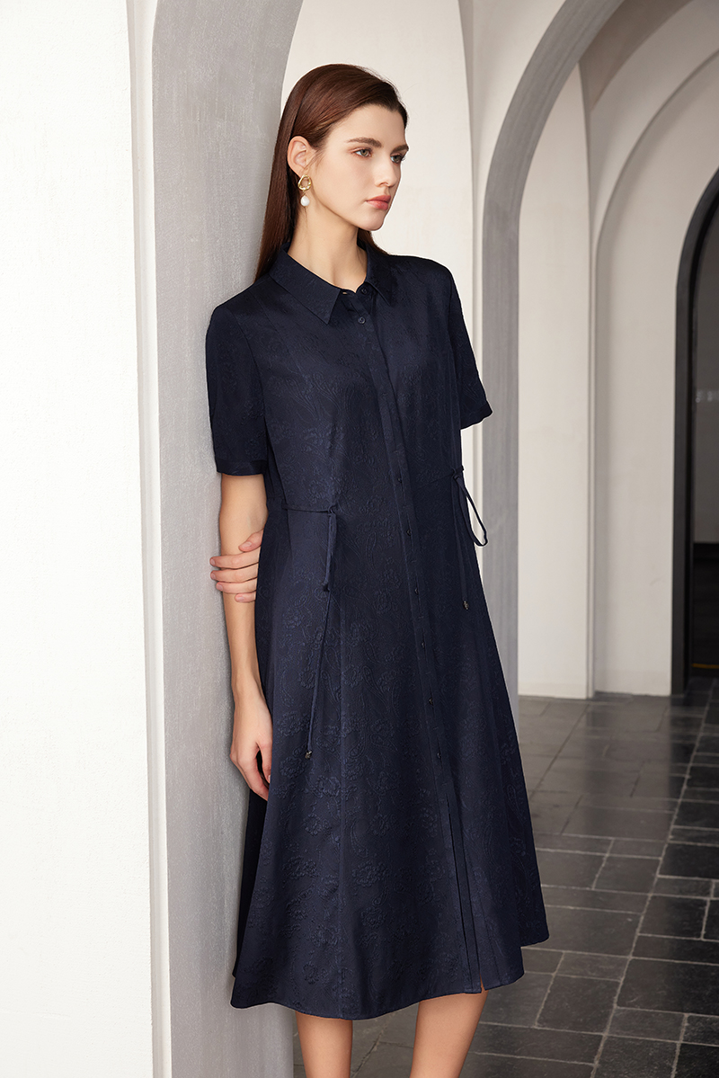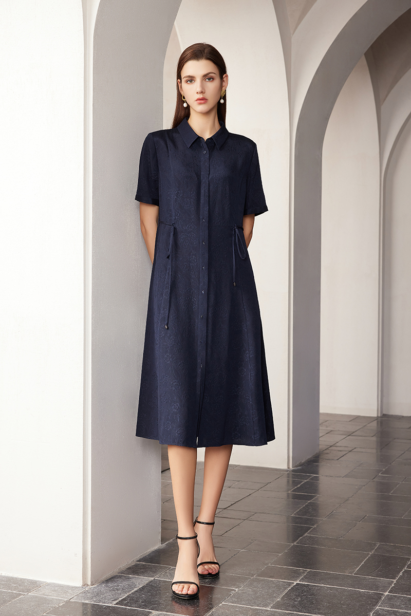 【桑蚕丝暗纹系带连衣裙】24年春夏新品女士真丝丝中长款衬衫裙子