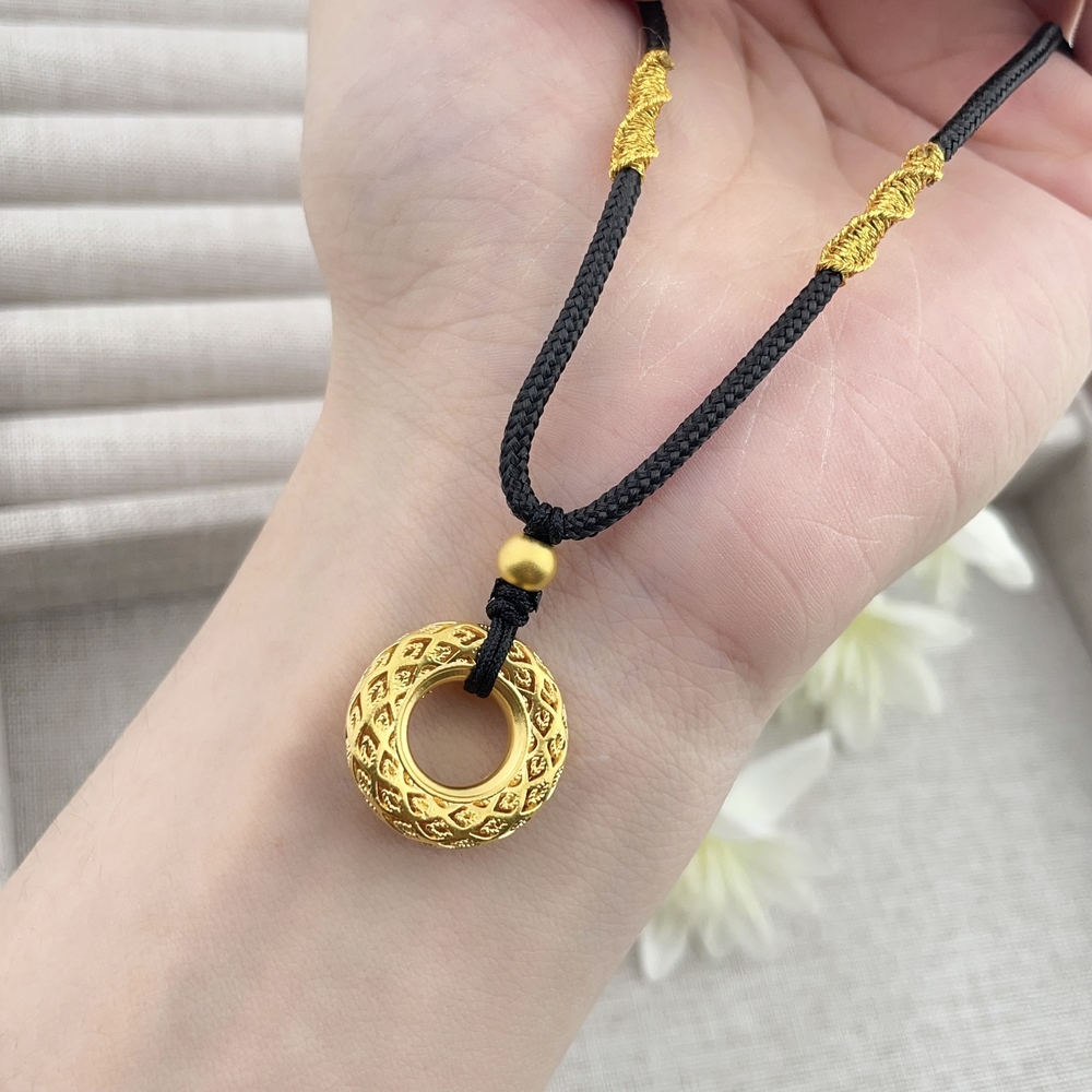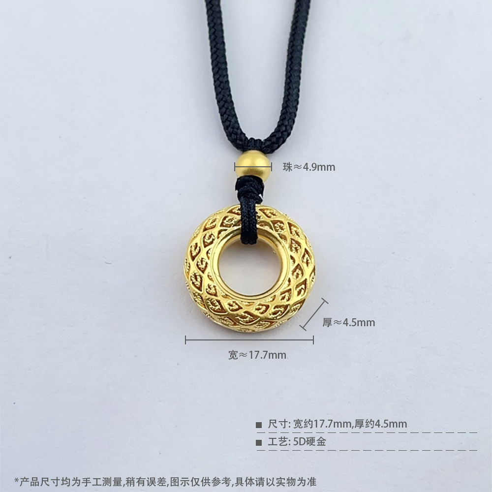 【限时7.5折】【定价黄金】足金 #平安 无氰5D硬金空心挂绳吊坠凤羽平安扣吊坠(含珠子)(AJ5DDZ00006)(预售产品下单后不退款不退货不换货不补差(预售产品下单后不退款不退货不换货不补差