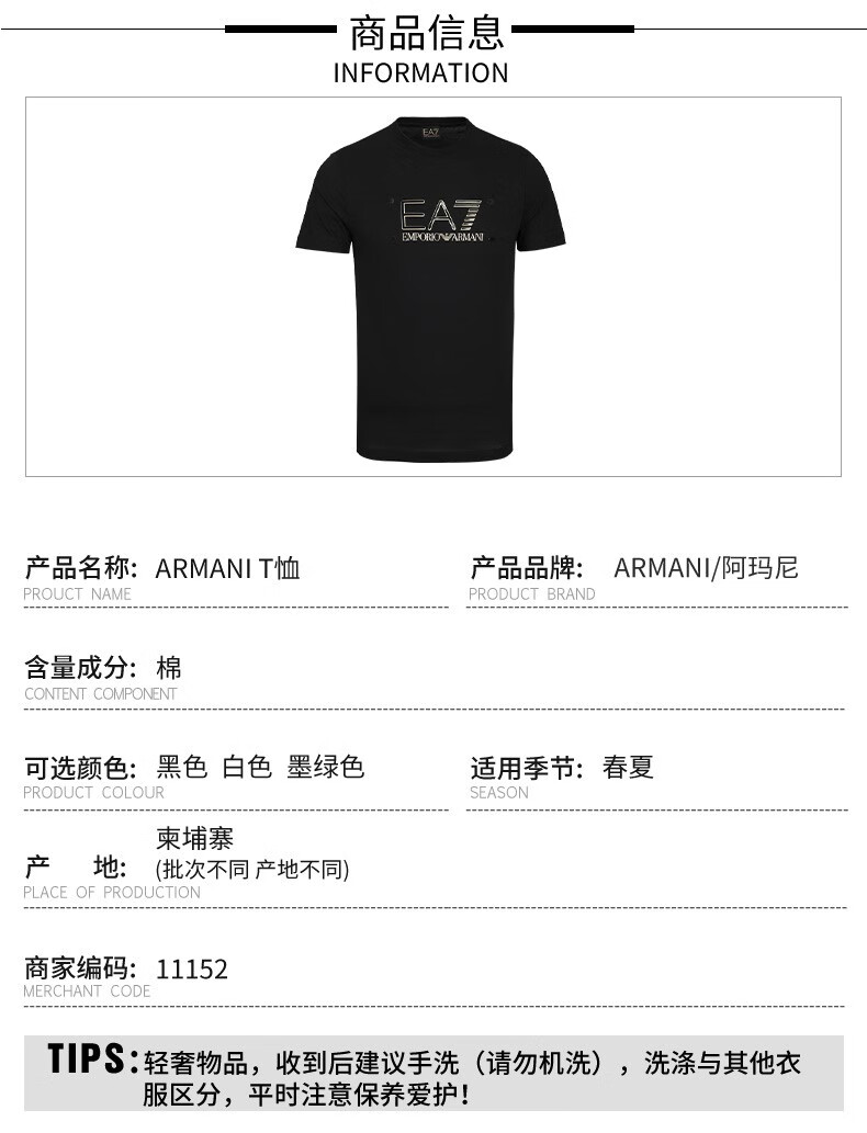 【特惠秒】阿玛尼(ARMANI)男装 男士时尚字母短袖圆领T恤 11152