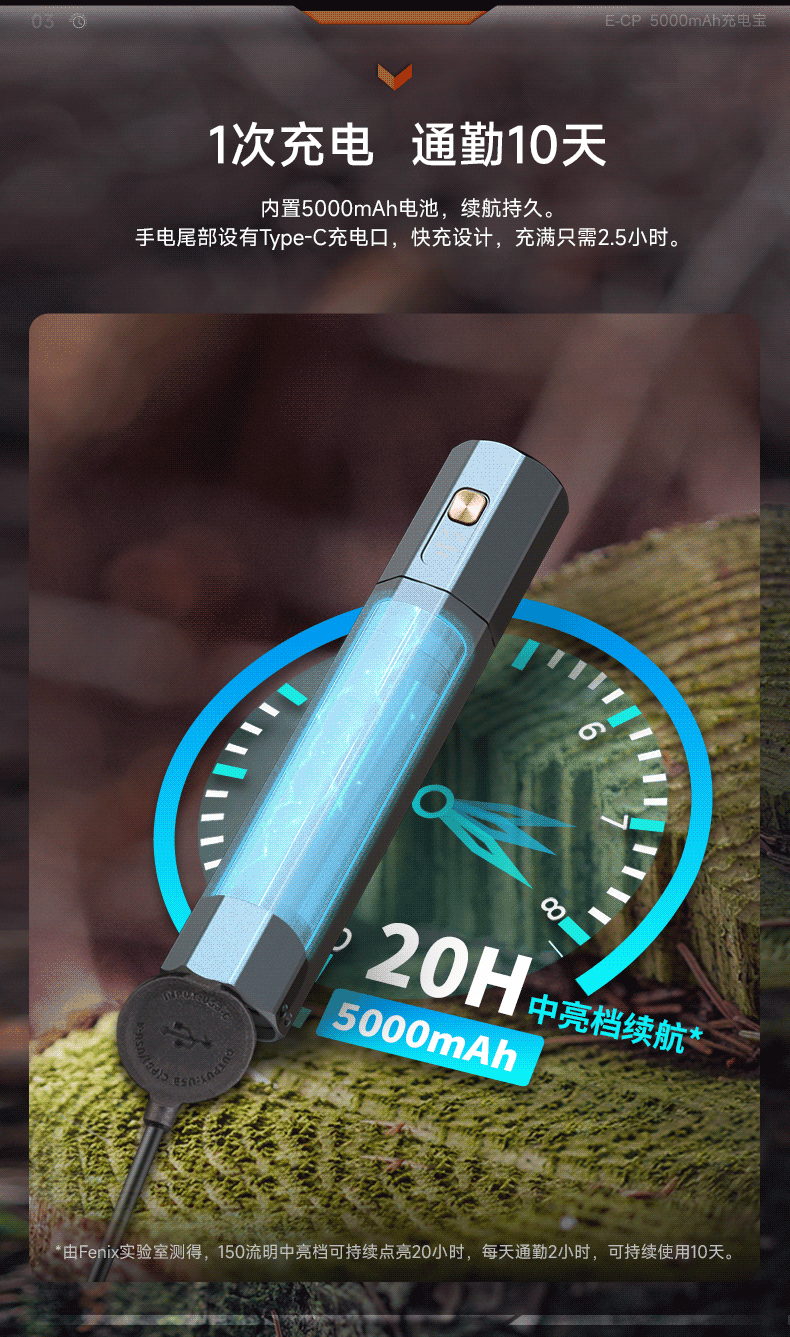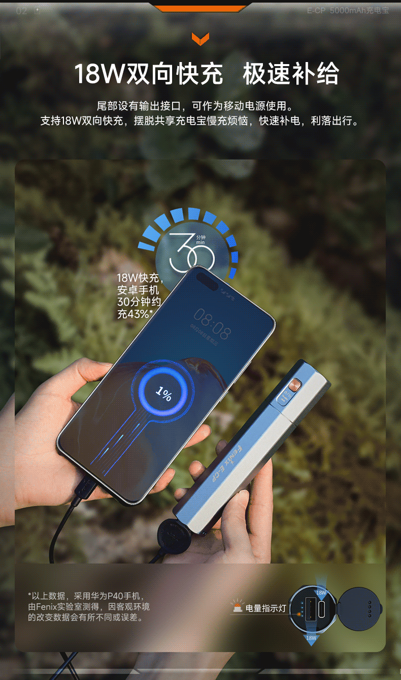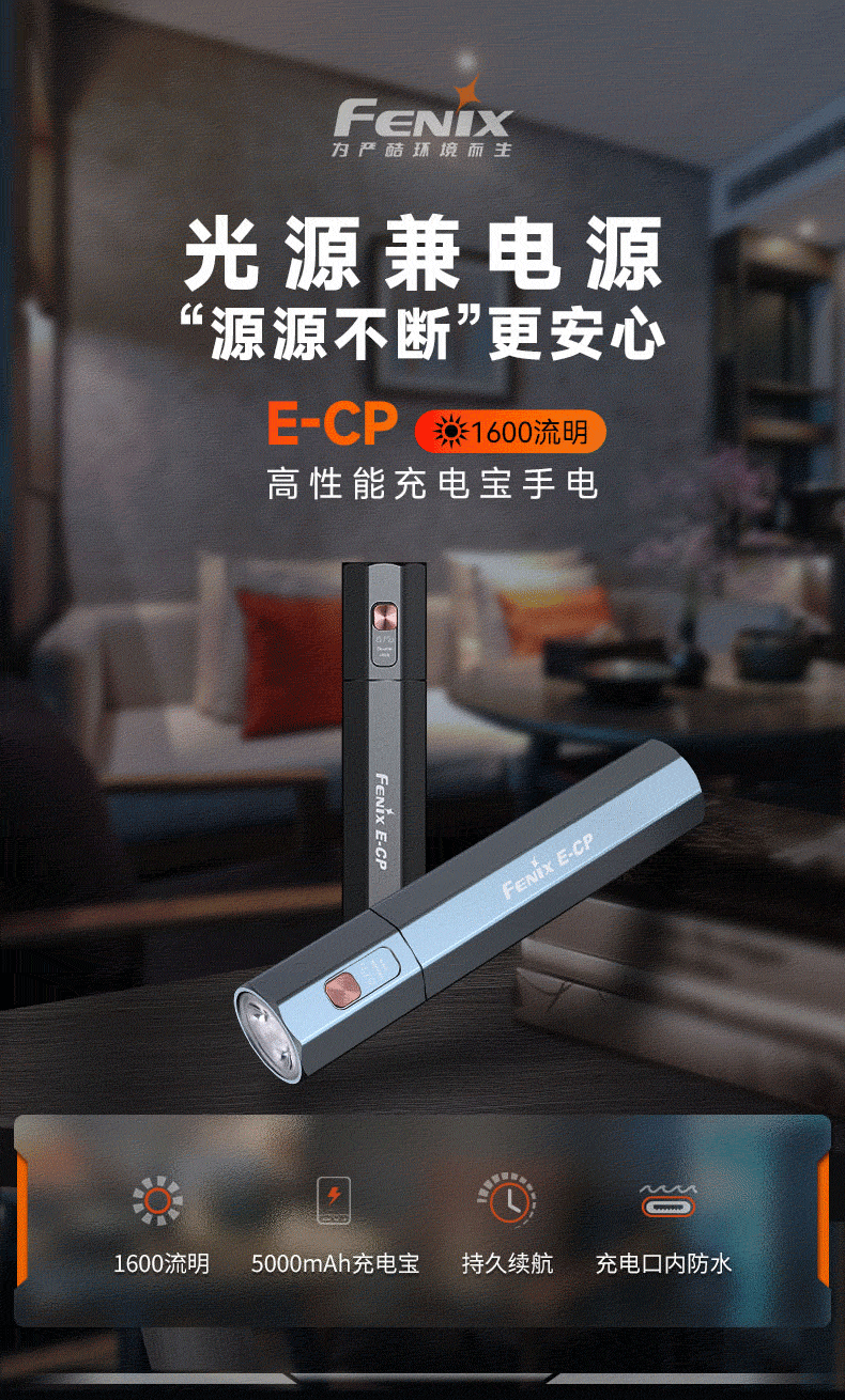 Fenix菲尼克斯E-CP充电宝手电18W快充应急便携强光超亮充电手电筒