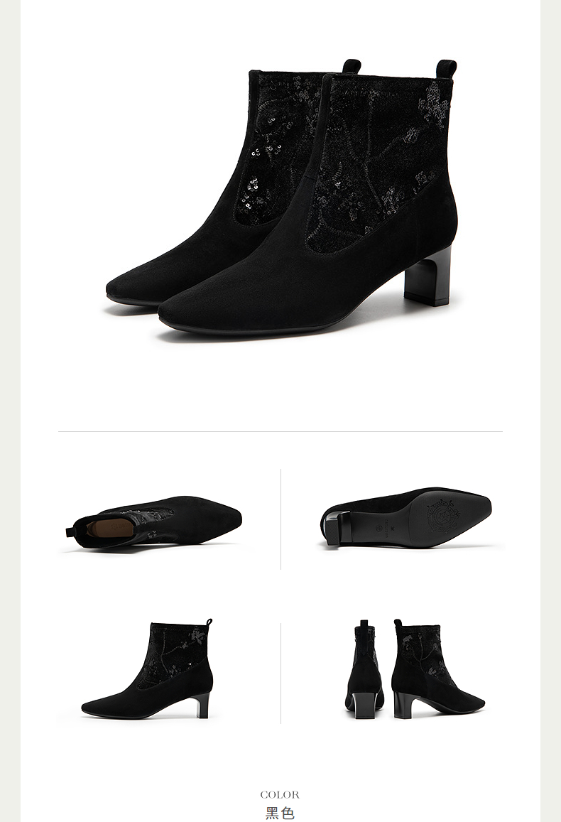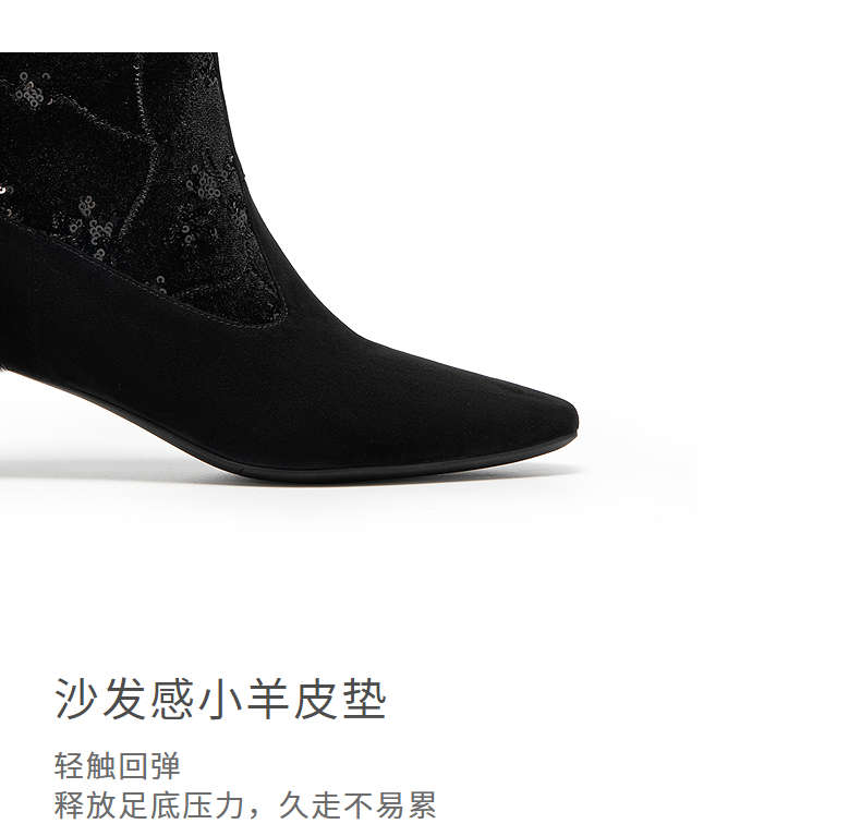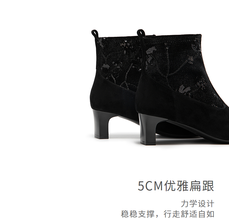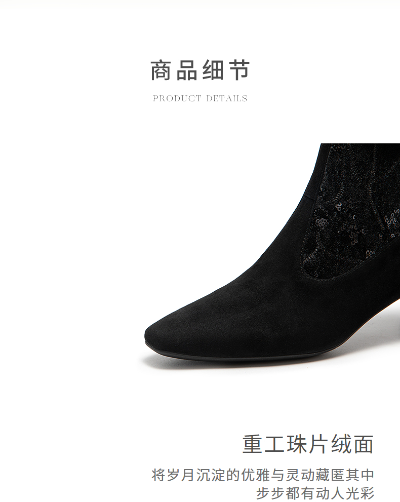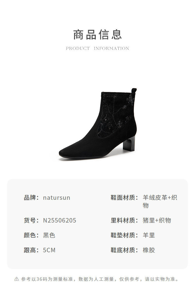 natursun复古弹力靴女黑色瘦瘦靴时尚百搭袜靴短筒靴N25506205