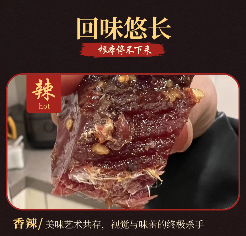 如果能吃辣,咱肯定还是推荐选辣味的,吃起来更带劲。不能吃辣的就选五香嗷~嚼起来醇香鲜美,同样肉味十足。