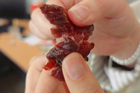 送到大家手上的牦牛肉干,开袋即食。刚打开包装就能闻到鲜香诱人的肉味~