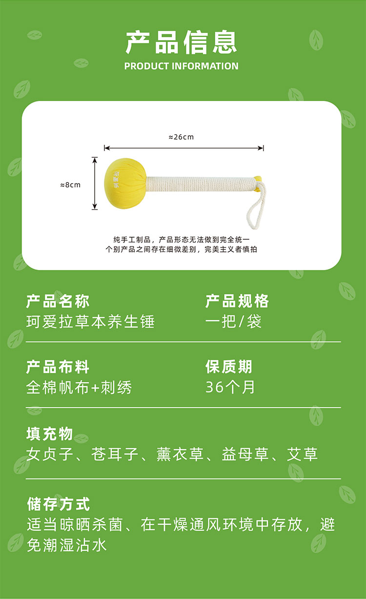 捶背神器!珂爱拉艾草养生锤 草本按摩 缓解酸痛 肩颈放松 疏通全身经络