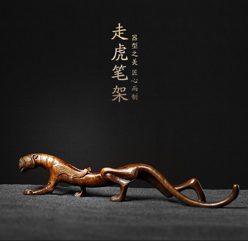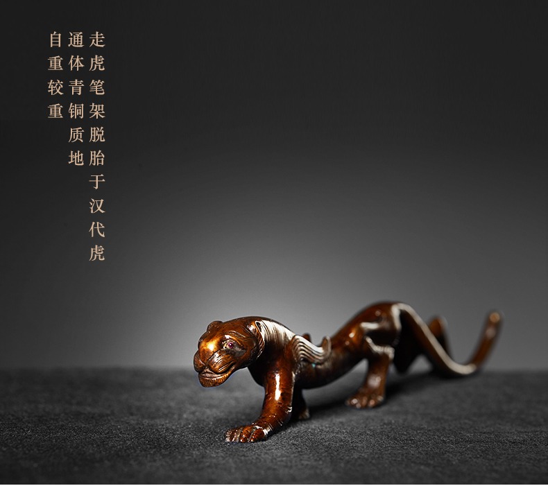 西泠印社 铜走虎毛笔架笔搁文镇仿古做旧铜器文房四宝书法书画用品中国风文房礼品送礼收藏送长辈