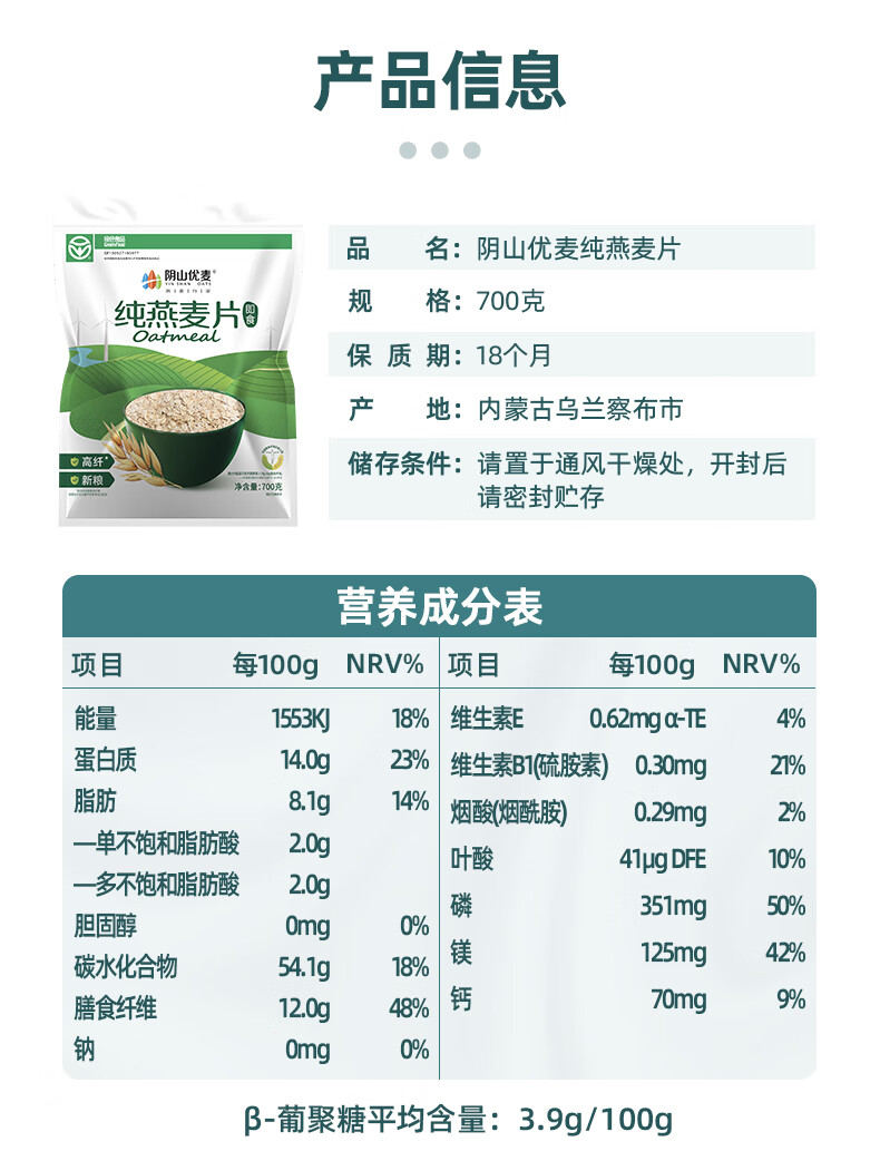 阴山优麦纯燕麦片700克(即食)