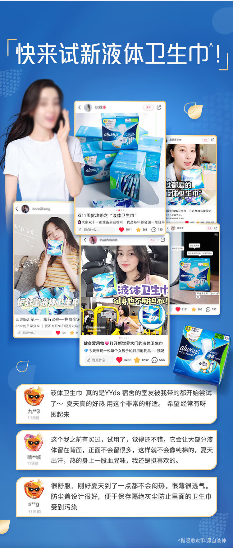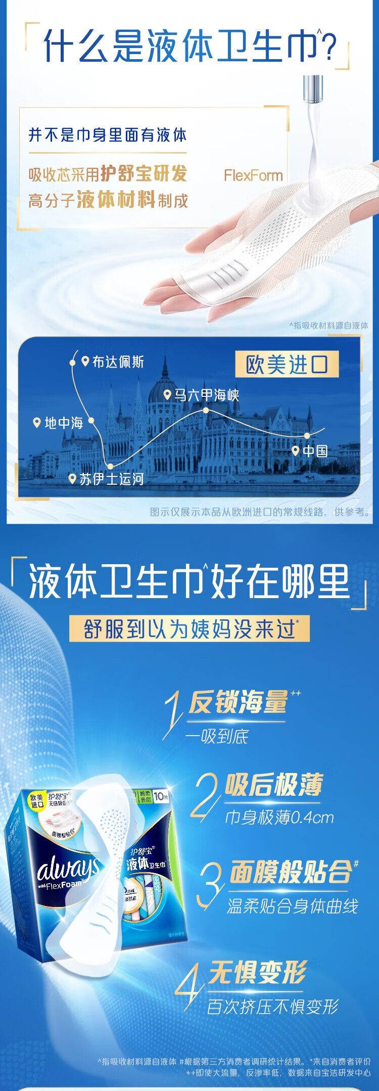 护舒宝未来感极护液体卫生巾量多日用270mm10片/包