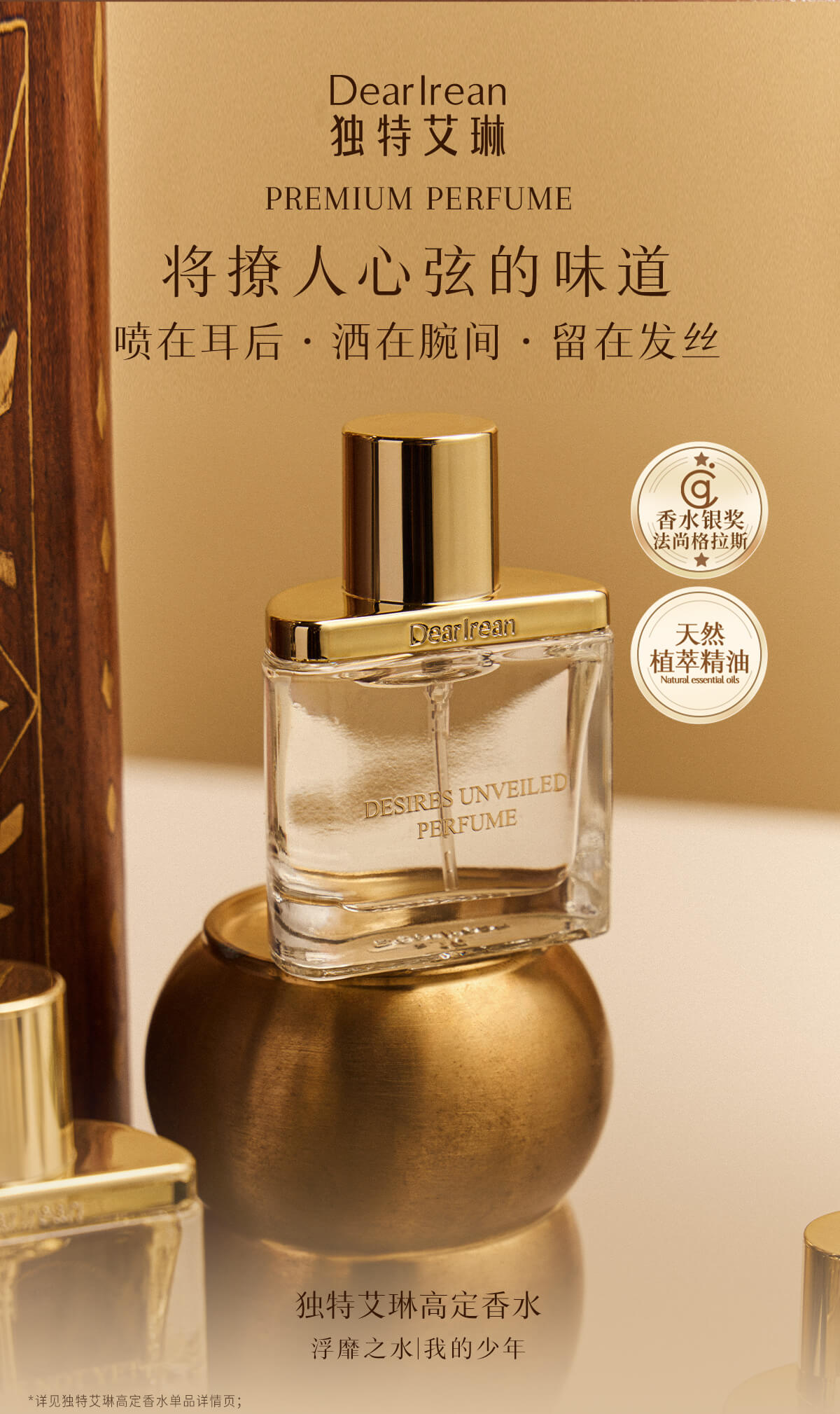 - DearIrean 独特艾琳,高定香氛生活品牌,拥有体•研究所,品牌致力于将高定香氛带入生活,同时倡导“以香之名,带给生活美好方式”的品牌理念,传递精致女性的爱、独立、自信。