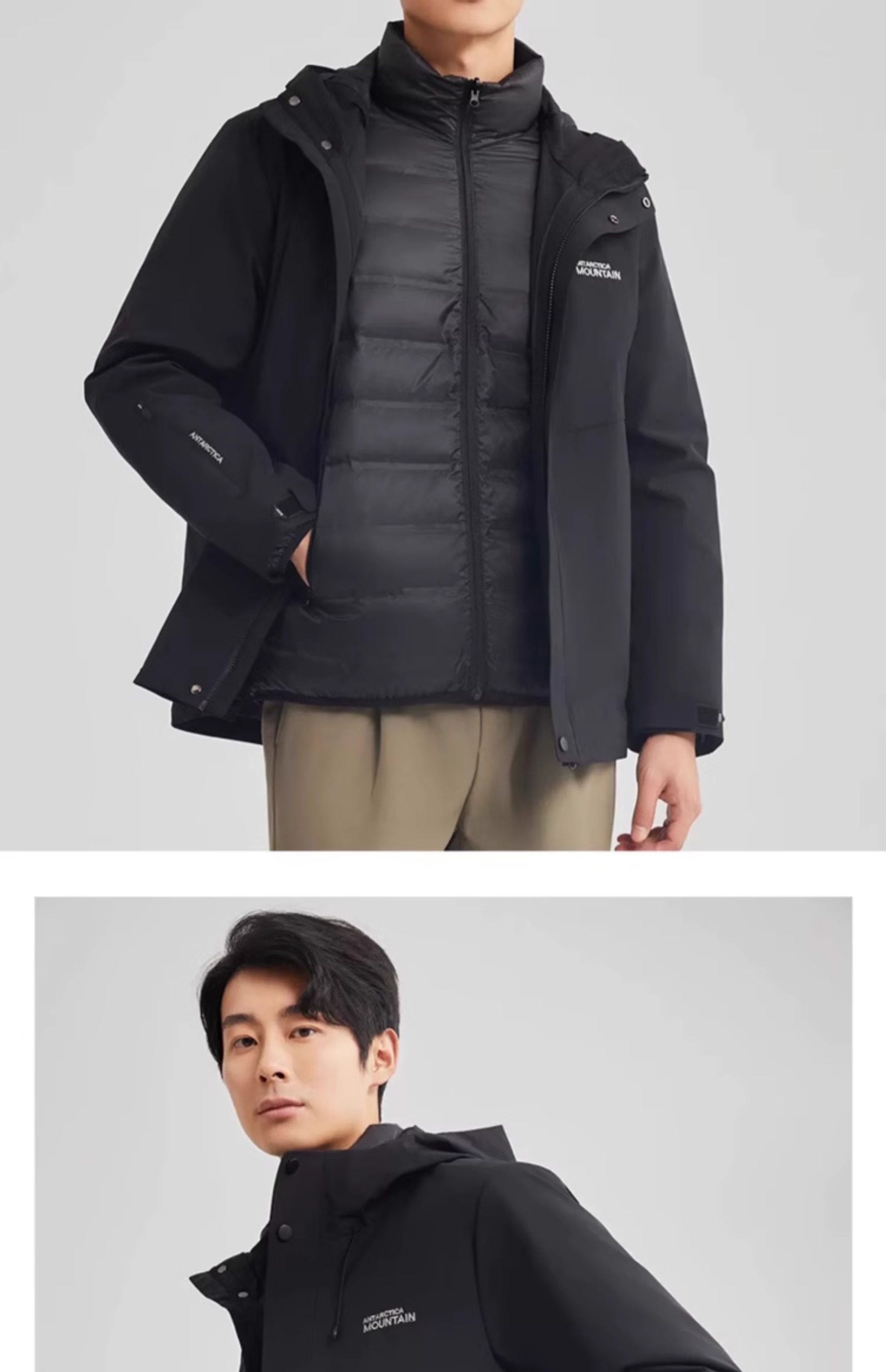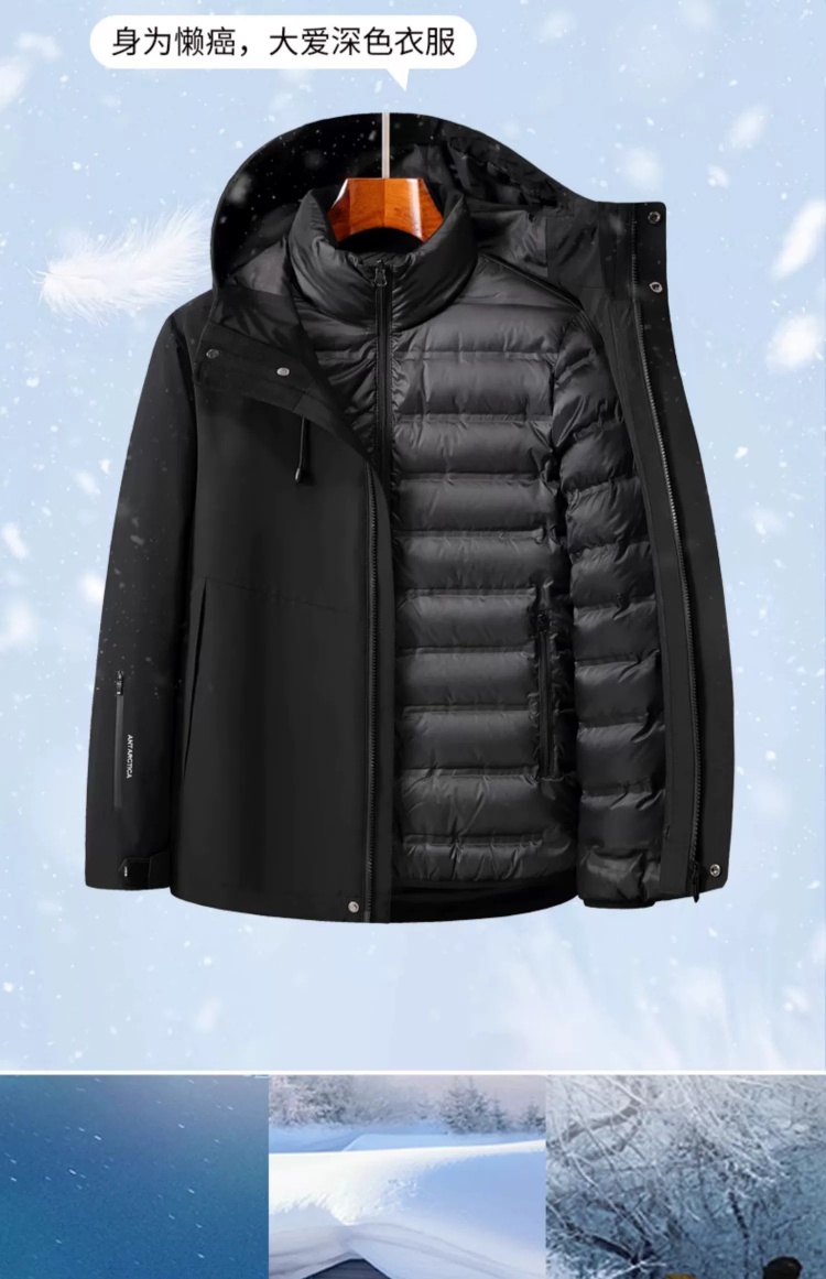 半身缘男女装 冬季男女同款情侣款一衣三穿防风衣蓄热羽绒服2356