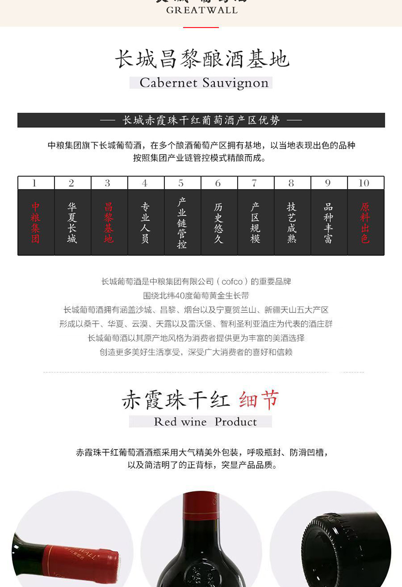 2020年长城华夏颂赤霞珠干红葡萄酒 酒精度13度 整箱750ml*6瓶包邮