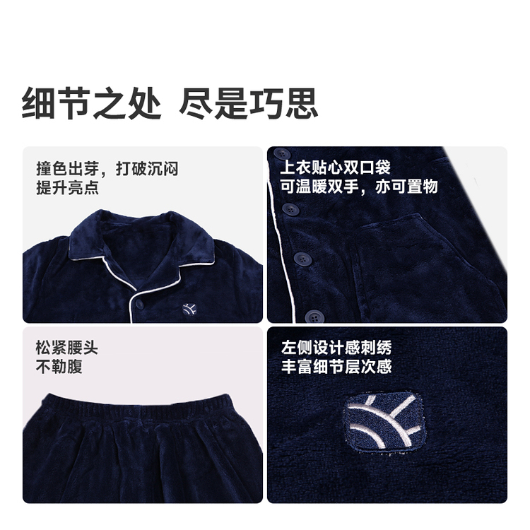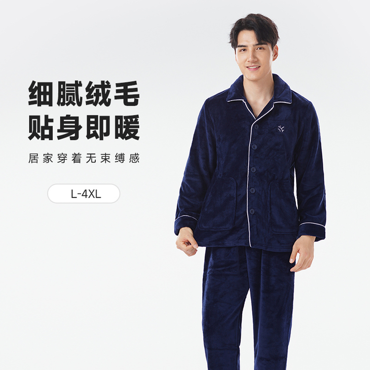 都市丽人睡衣双面法兰绒睡衣男士家居服长袖长裤法兰绒套装FHH0B6