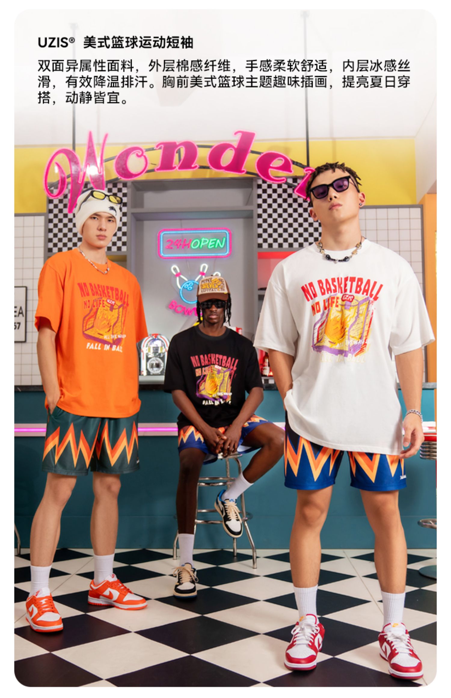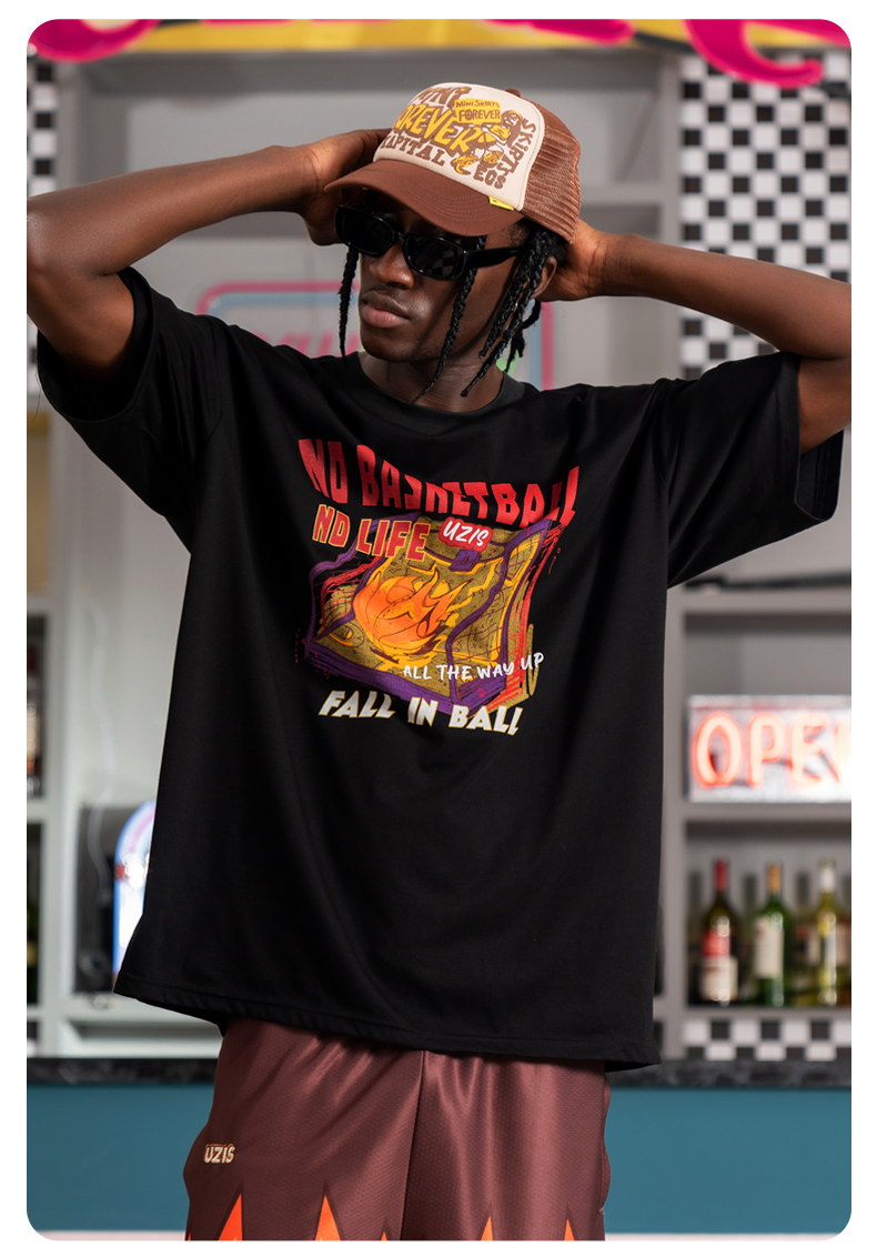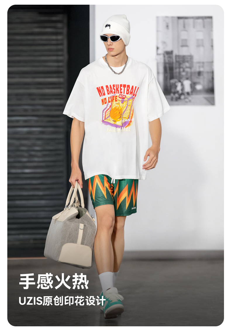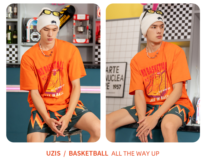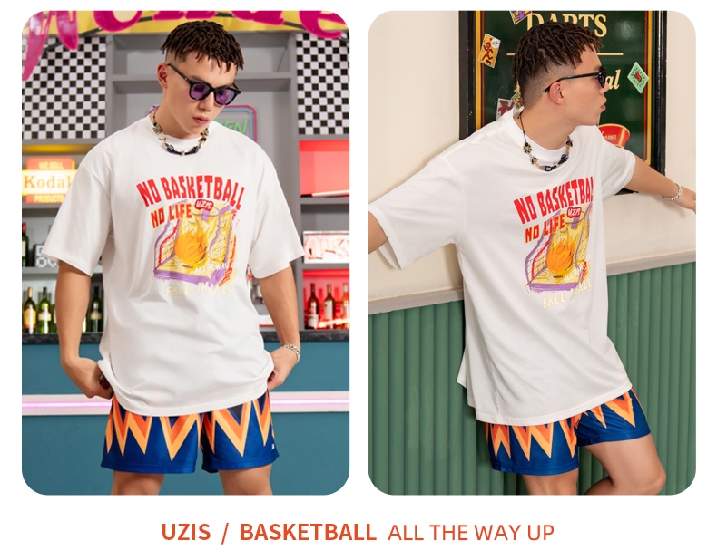 UZIS 运动短袖男篮球训练服上衣宽松圆领夏季透气跑步T恤手感火热