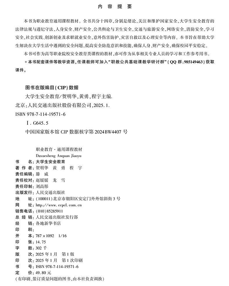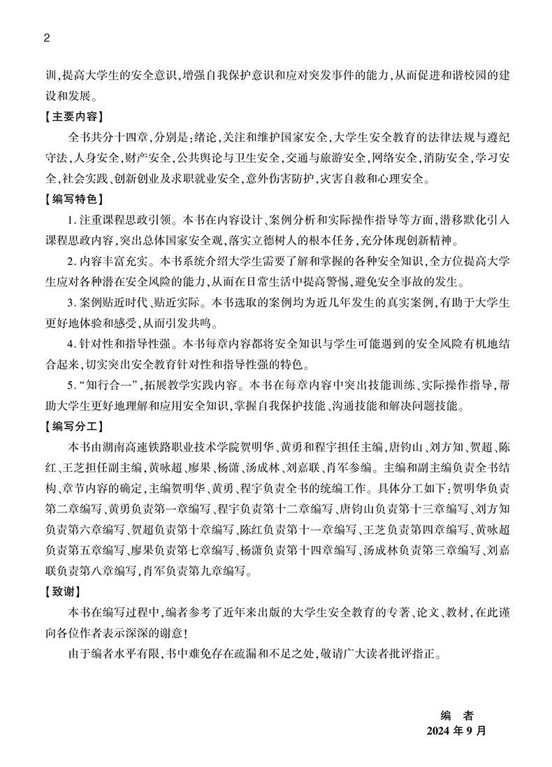书名:大学生安全教育