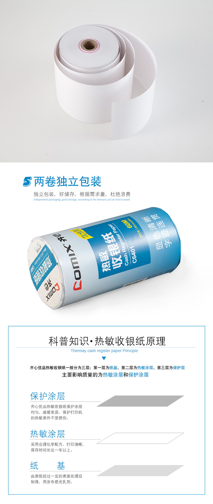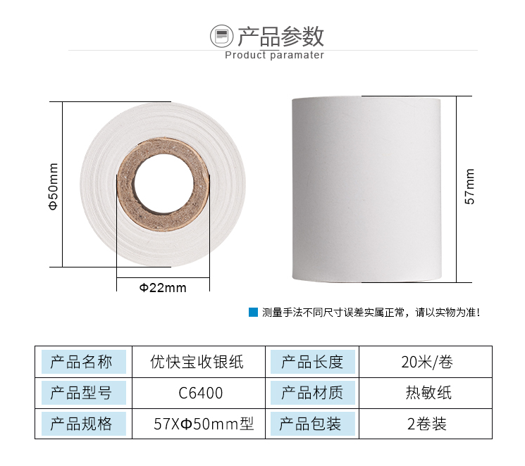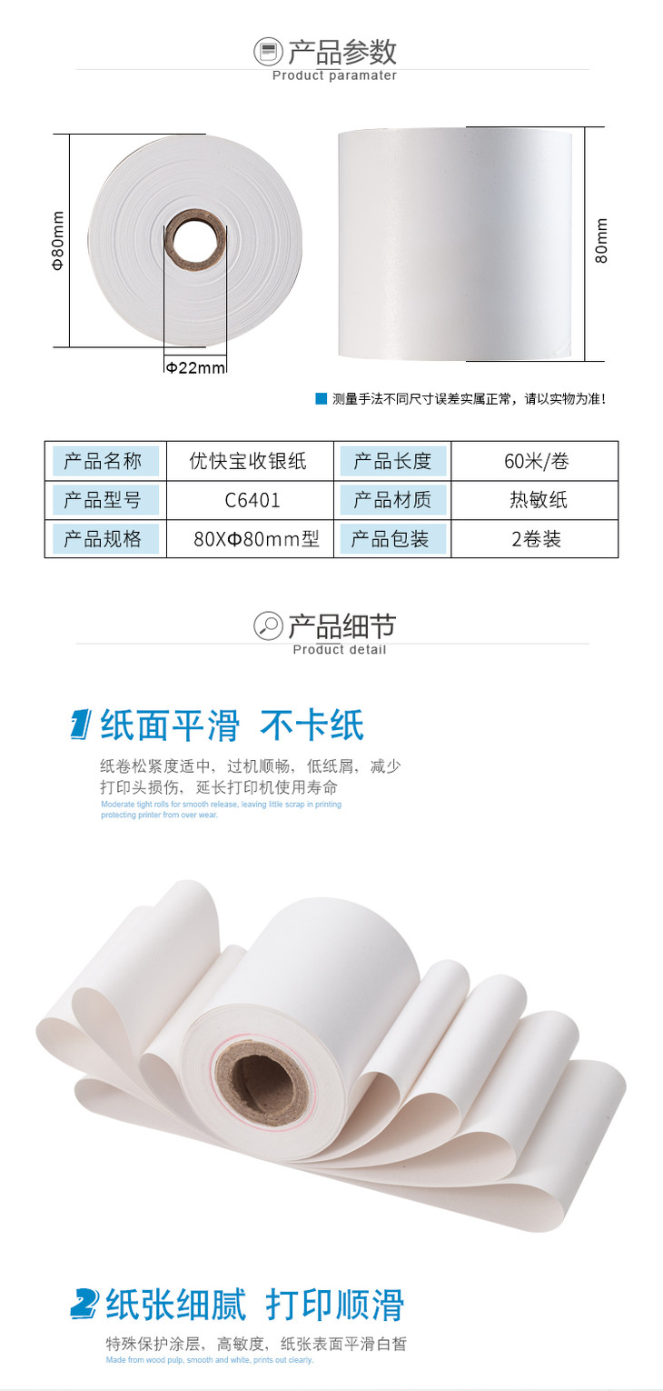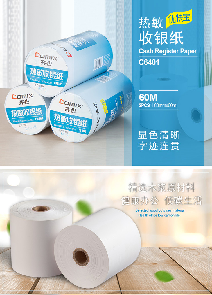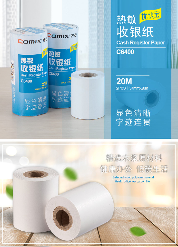 齐心 C6400K/C6401K 优快宝热敏收银纸