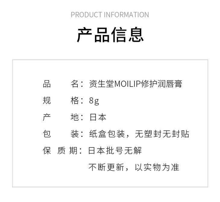 日本资生堂MOILIP修护唇润唇膏唇炎干躁裂滋润防保湿8g