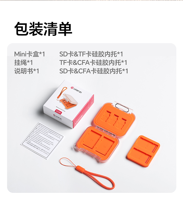 Ulanzi优篮子 CC01内存SD卡收纳盒大容量mini卡盒TF收纳包CFA卡套保护盒防尘防潮相机配件闪存卡SIM手机卡包