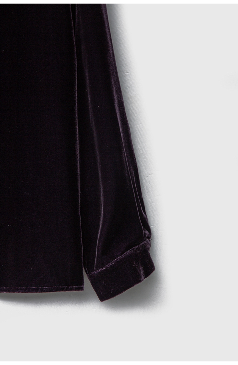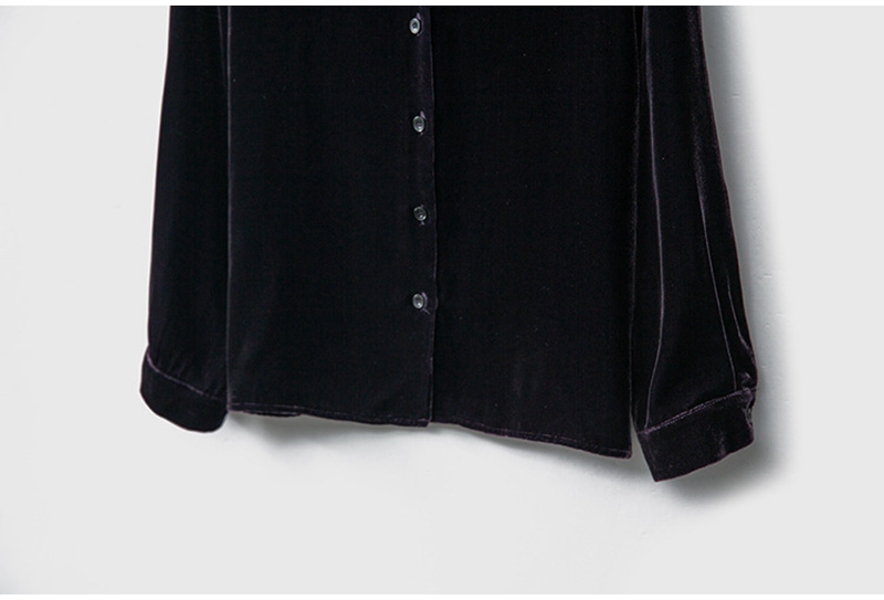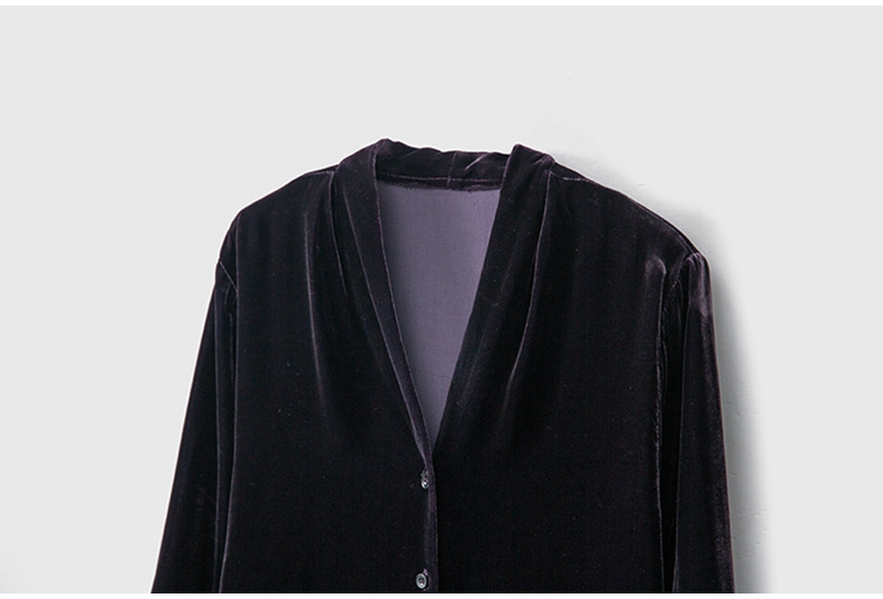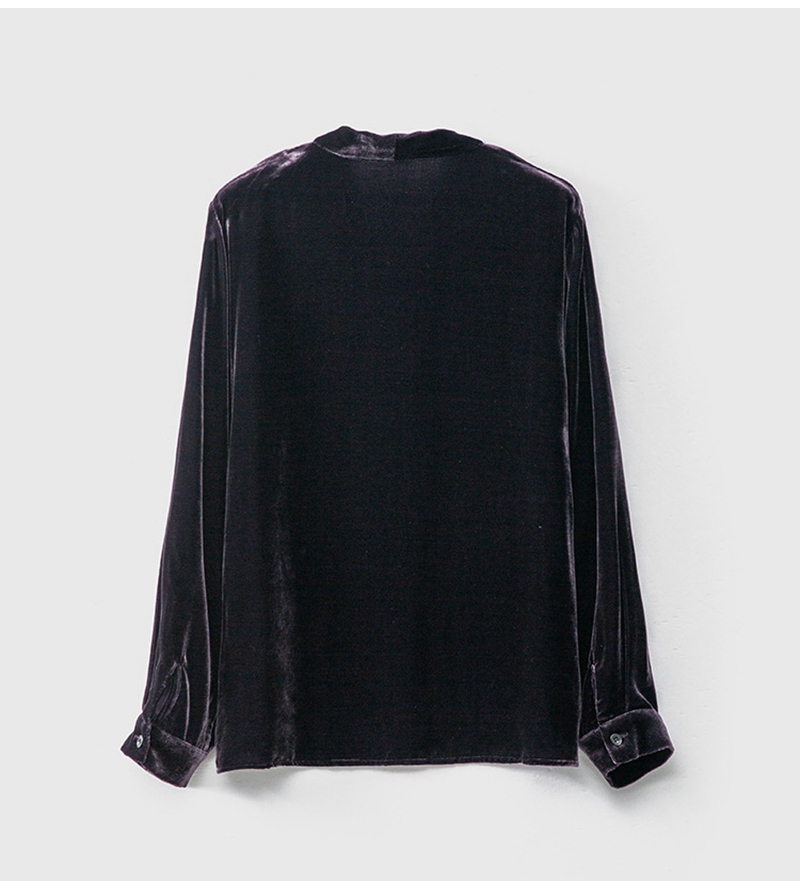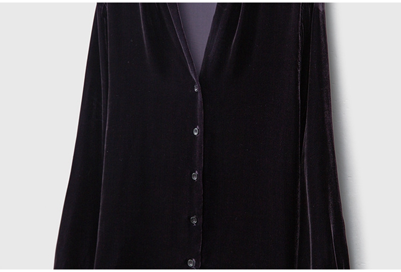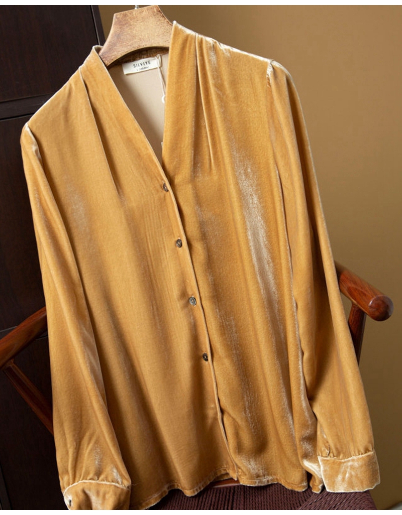 2026春优雅气质V领长袖单排扣真丝丝绒衬衫
