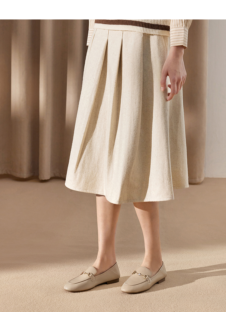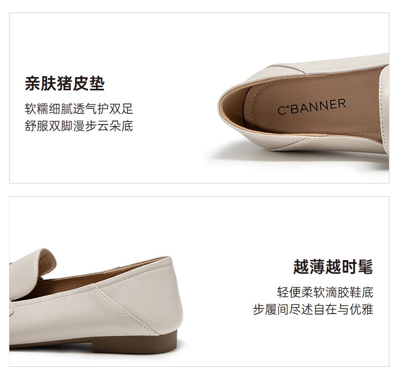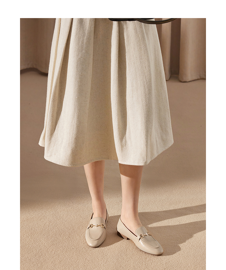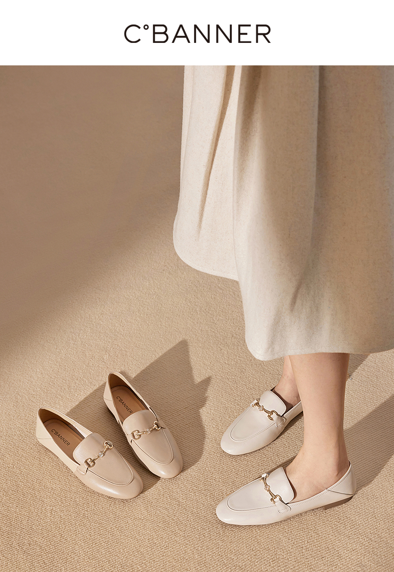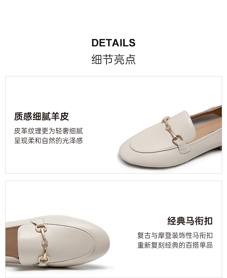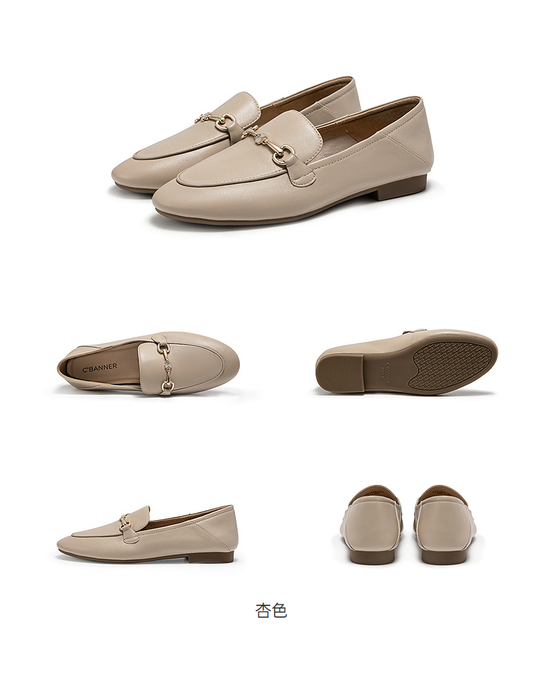 千百度经典羊皮低跟乐福鞋女通勤正装豆豆鞋两穿单鞋A25102516