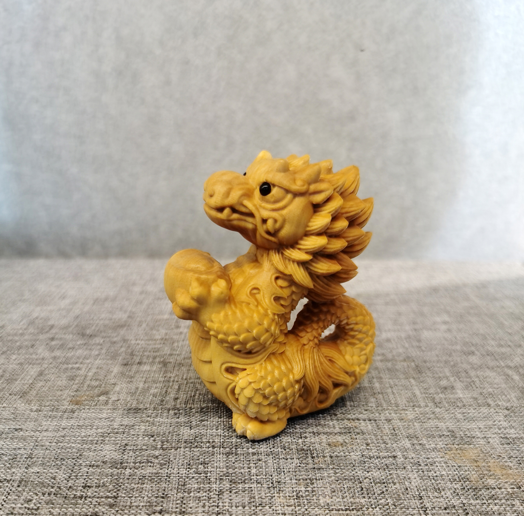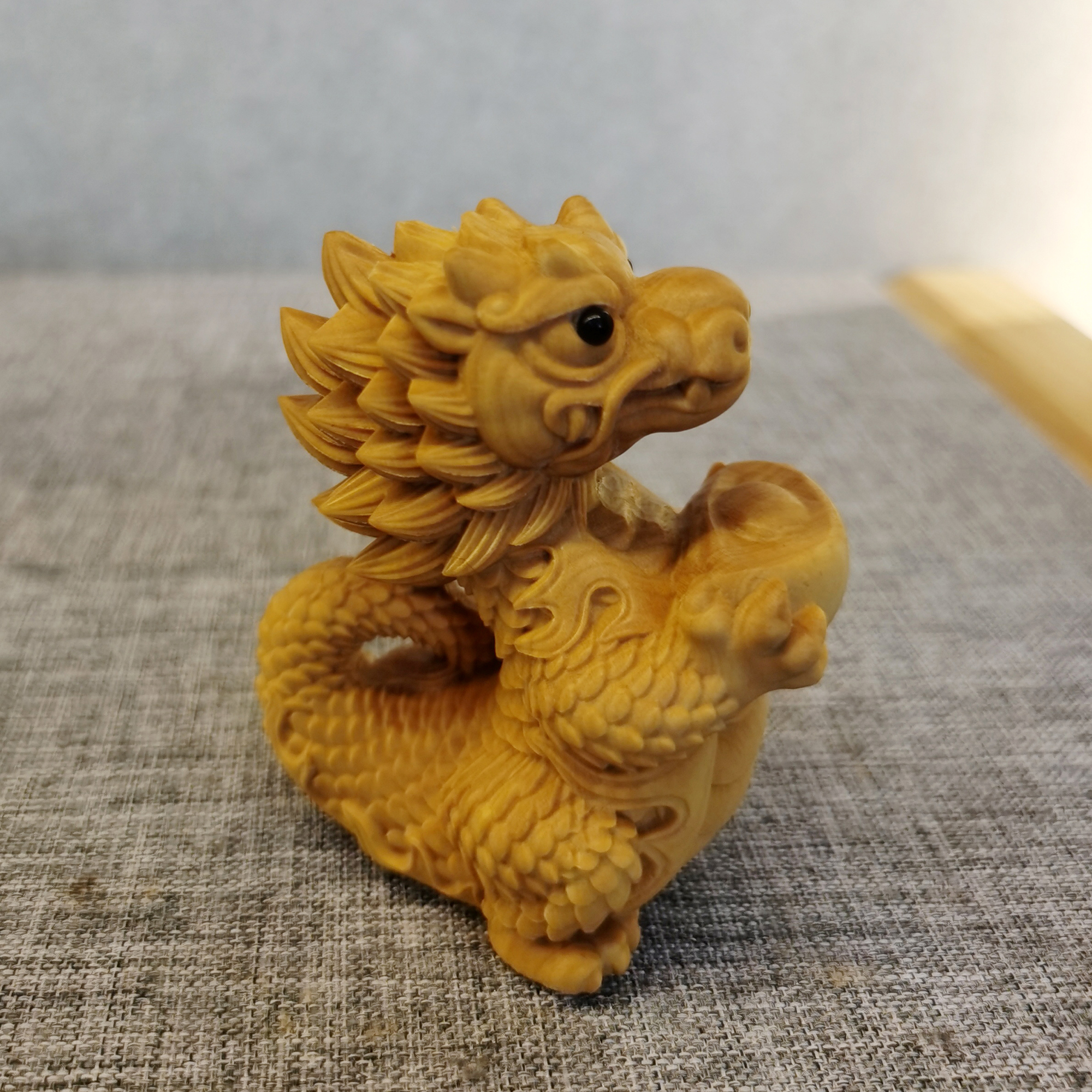 招财龙°黄杨木雕摆件