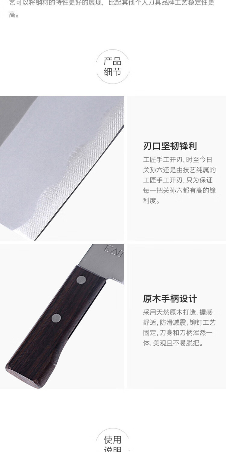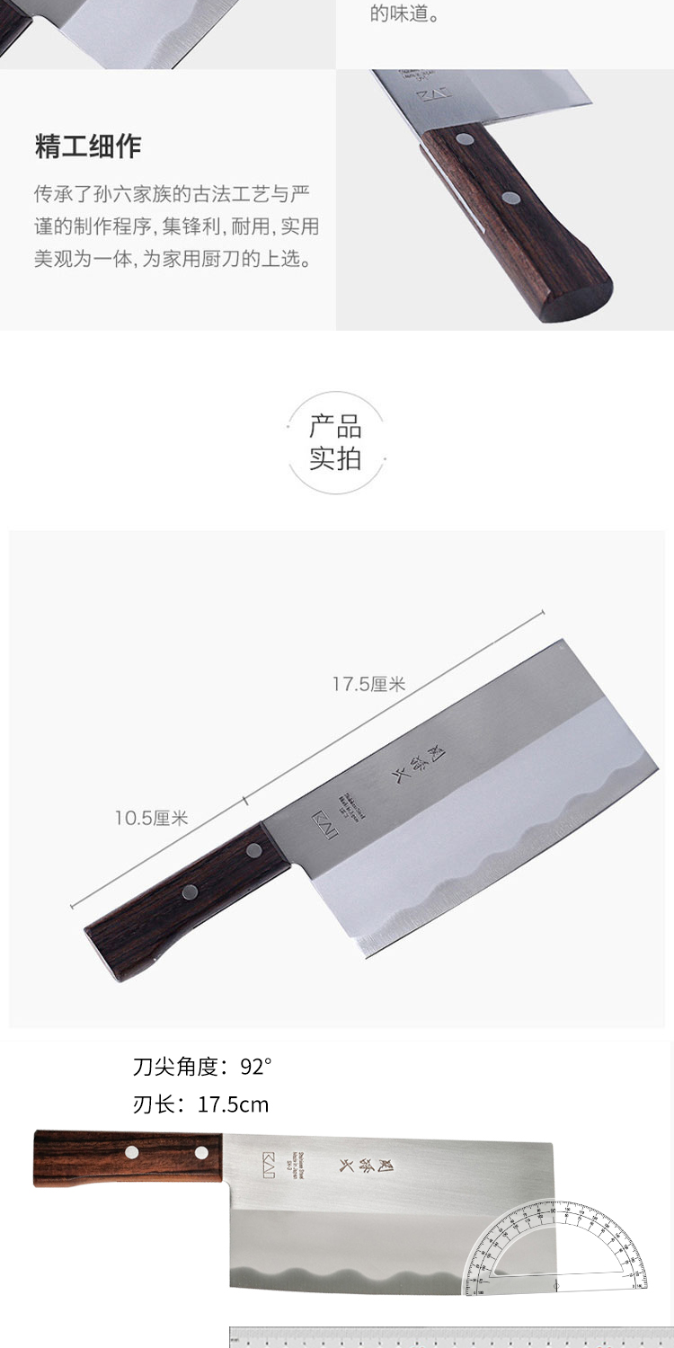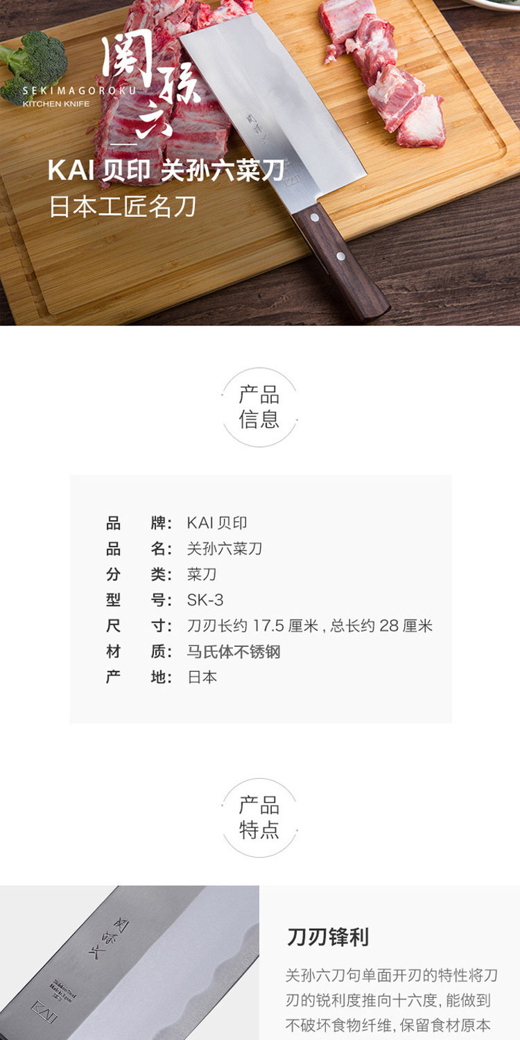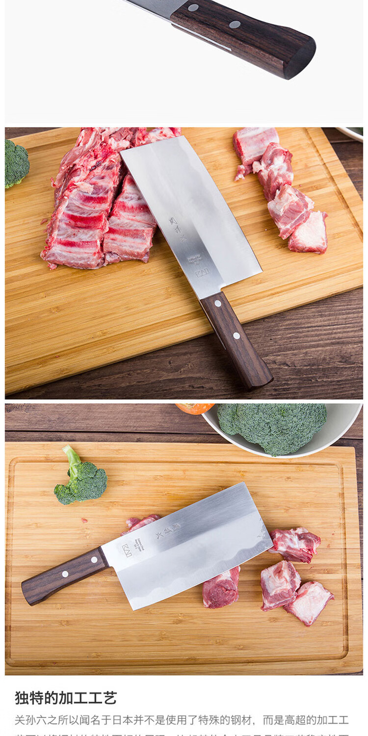 【仅一把无货退款】贝印关孙六系列中华片刀 防粘传统家用菜刀切肉刀若竹系列水果刀三德刀
