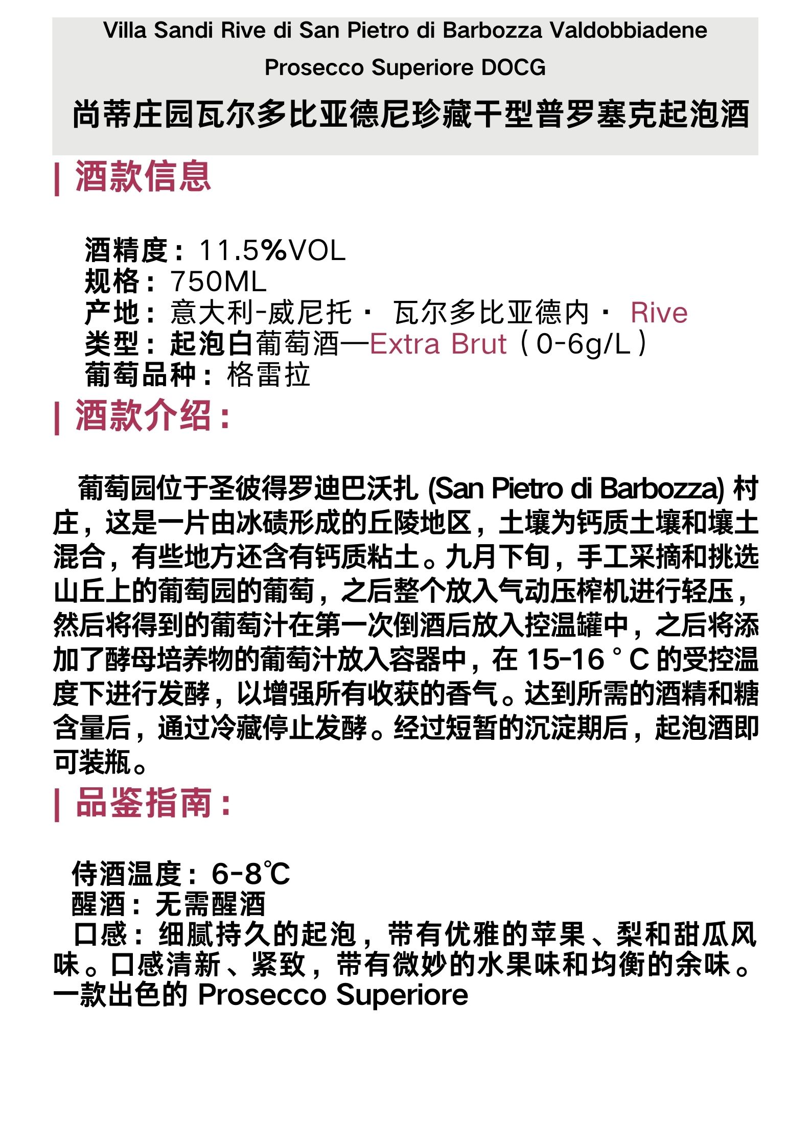 尚蒂庄园瓦尔多比亚德尼珍藏干型普罗塞克