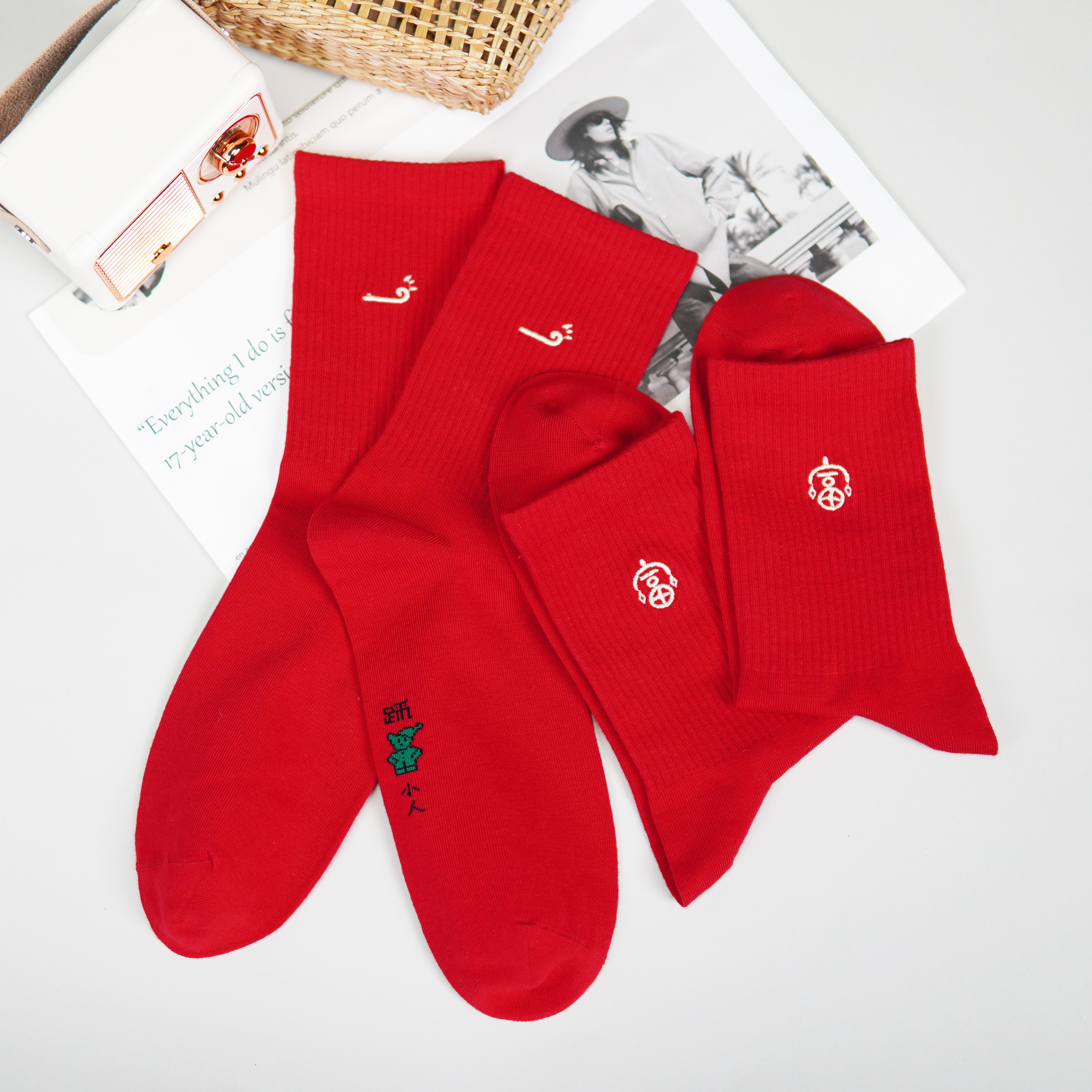 【2双装】【6双6折】男士新年鸿运袜本命年红袜子中长筒四季棉袜男袜子【2421209】