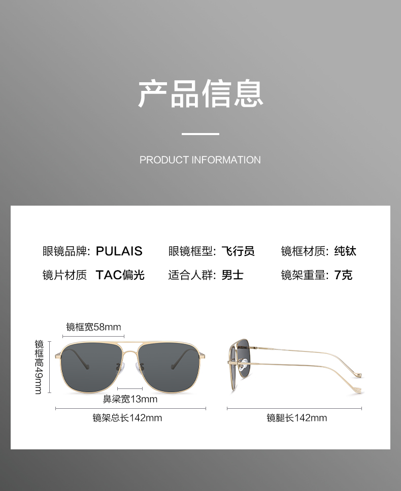普莱斯5186 纯钛 偏光太阳镜 男款