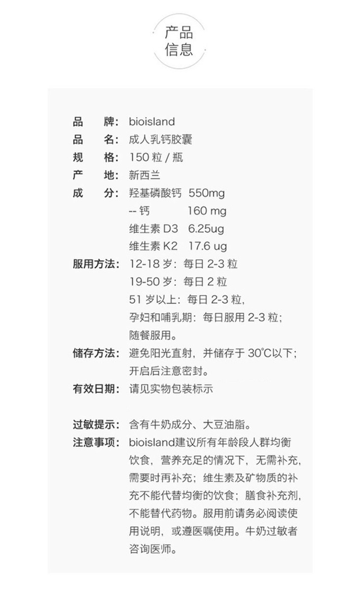 澳洲Bio Island 成人孕妇老人天然液体钙150粒