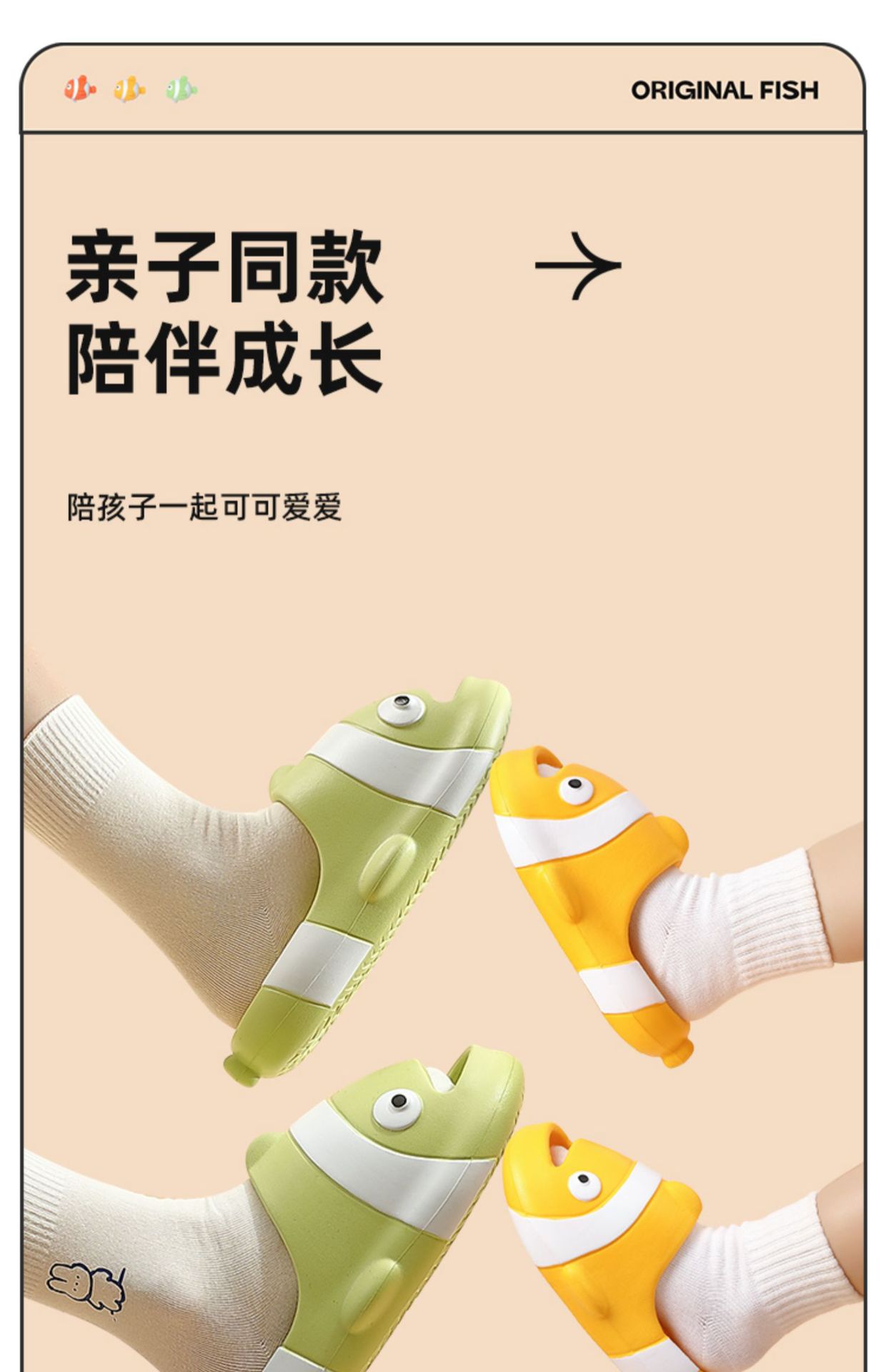 【小丑鱼防撞鞋头防滑亲子款】踩屎感儿童拖鞋夏女童室内一家三口洗澡防滑婴幼儿宝宝凉拖鞋