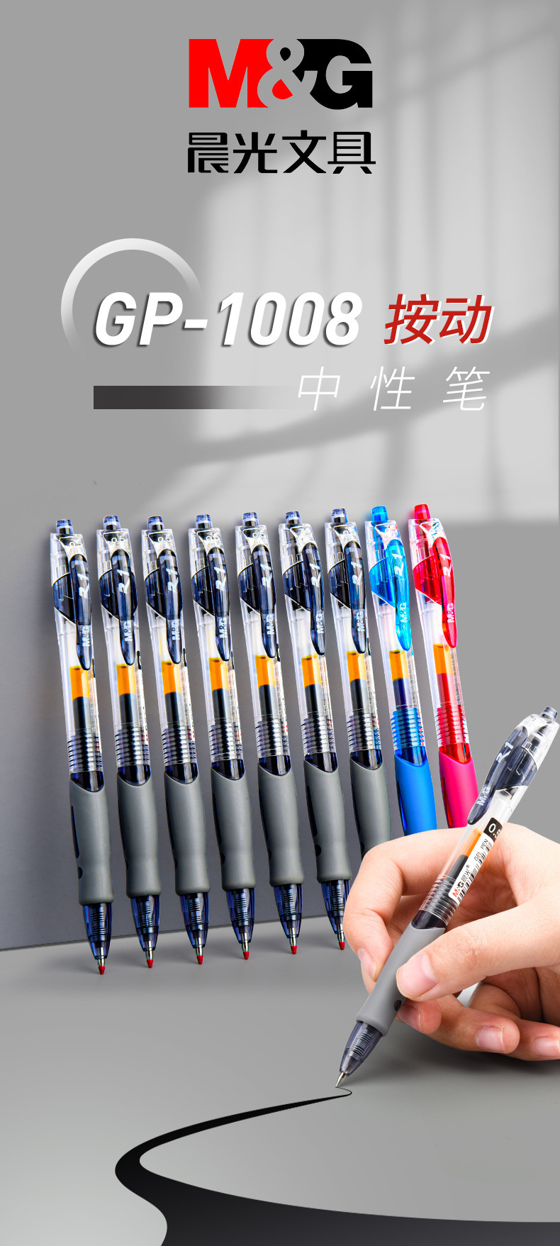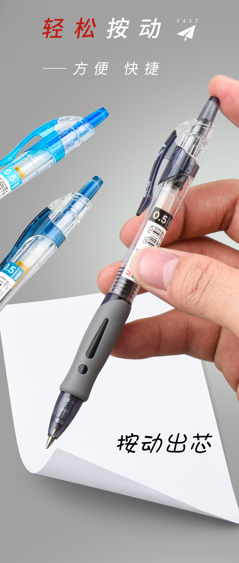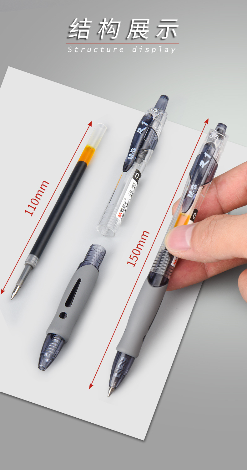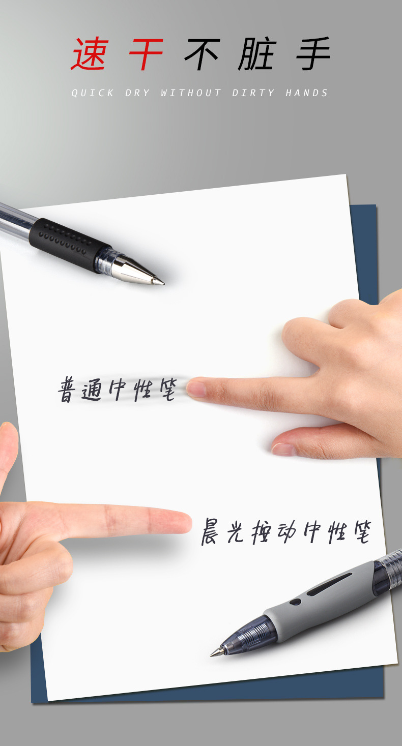 【软胶护套!久握不累】晨光GP-1008按压中性笔0.5黑色子弹头学生刷题笔速干墨蓝碳素笔。rb