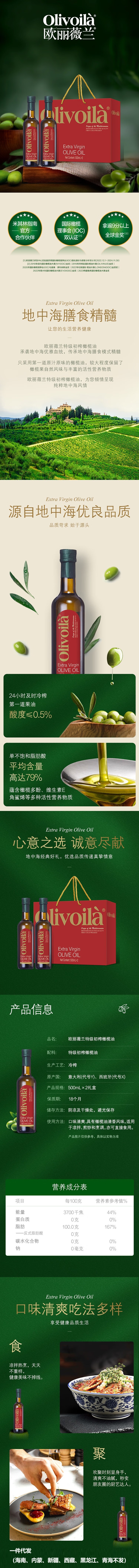 欧丽薇兰 特级初榨橄榄油红标500ML*2