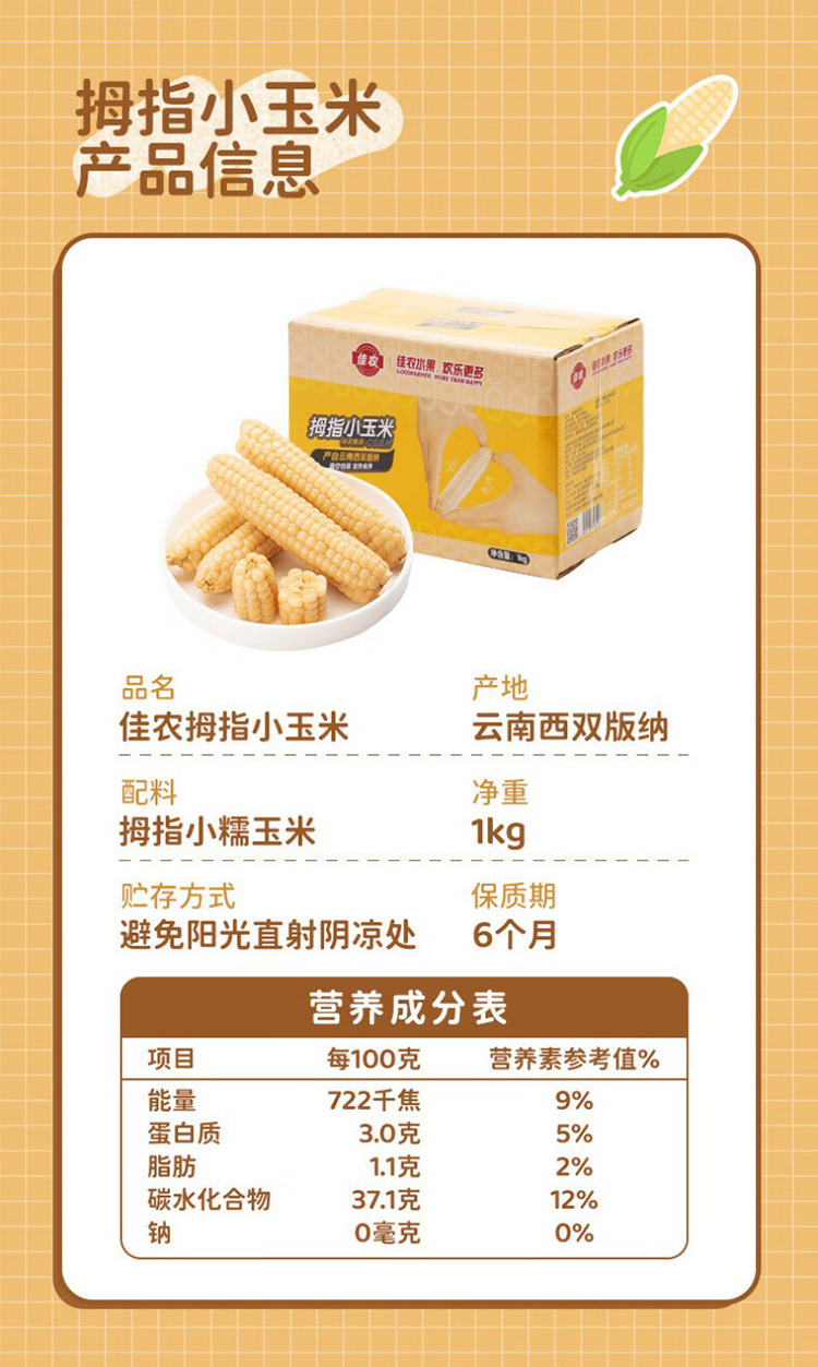 【顺丰产地直发】佳农拇指玉米10包*2根1kg箱