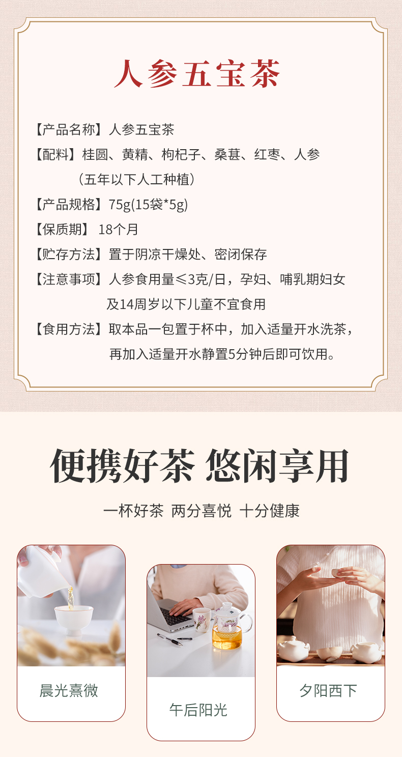 广誉远人参五宝茶 75g(5g*15包) 效期至2022年7月18日