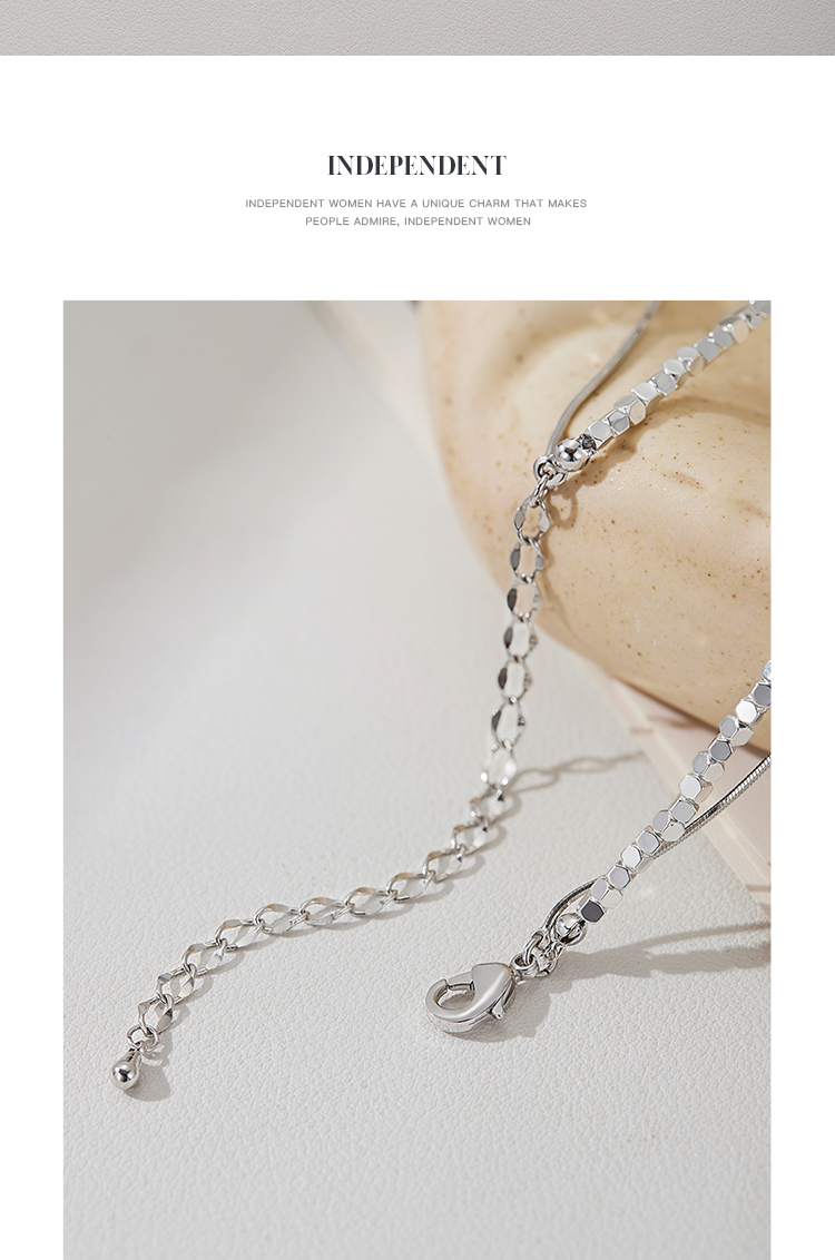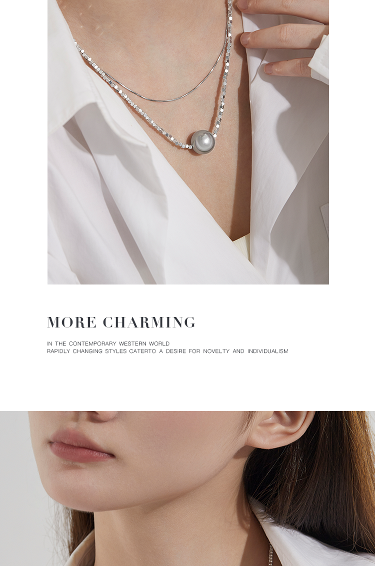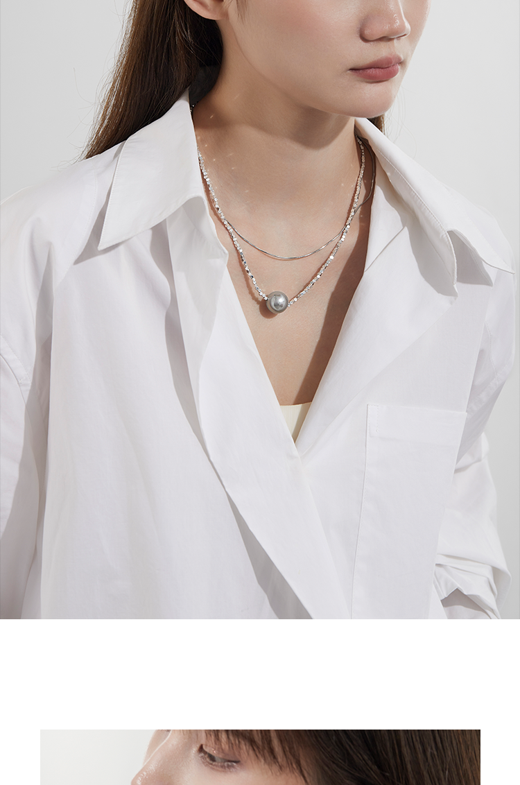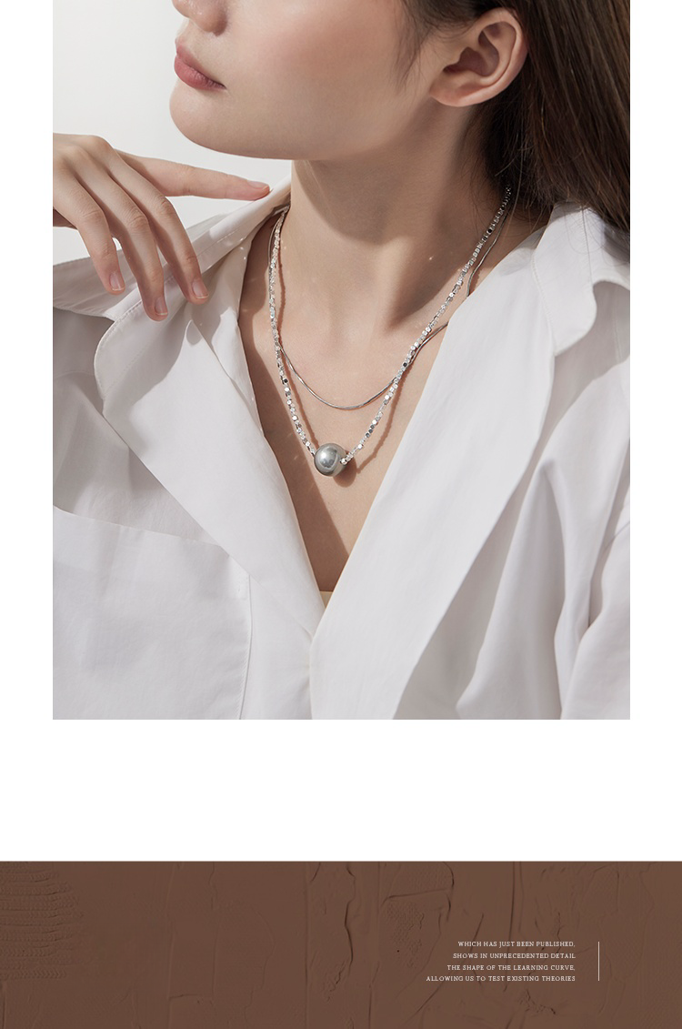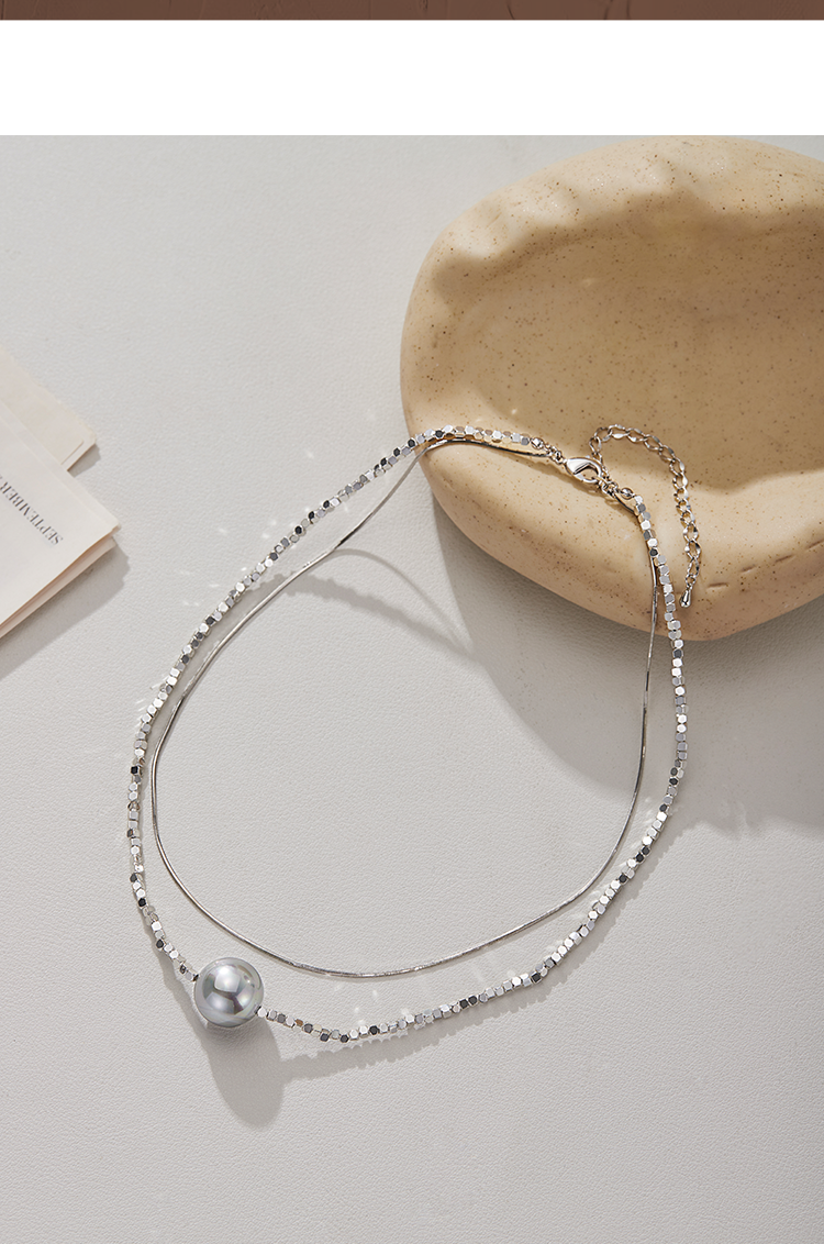 Oflye潮流饰品 法式复古双层碎银子珍珠项链女小众设计感颈链时尚气质轻奢锁骨链