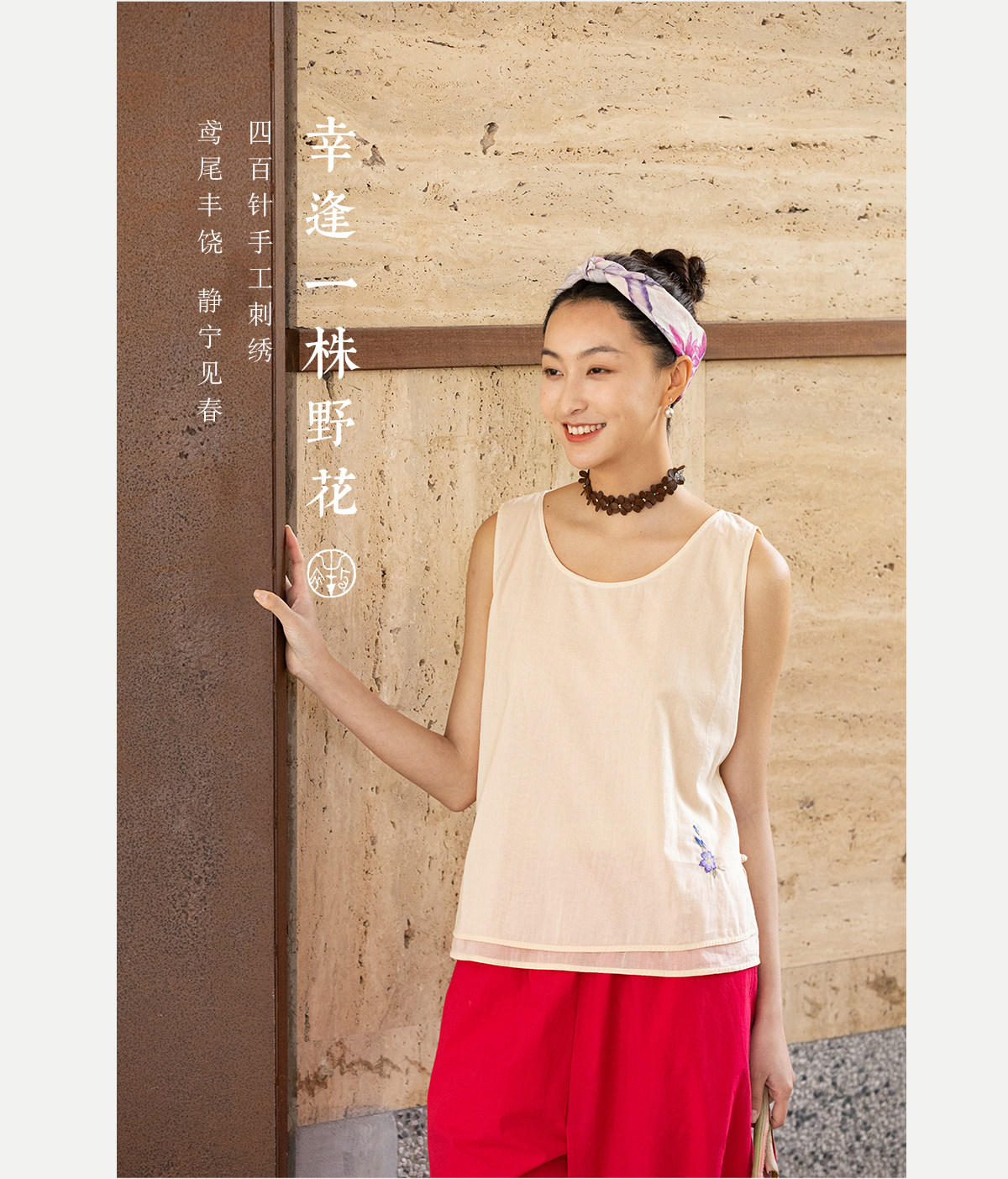 牧衣游原创 手工刺绣纯棉背心女夏 限量福利款 芳芯不支持会员折