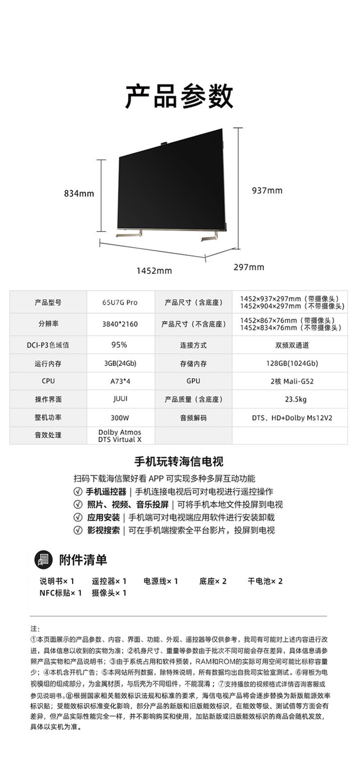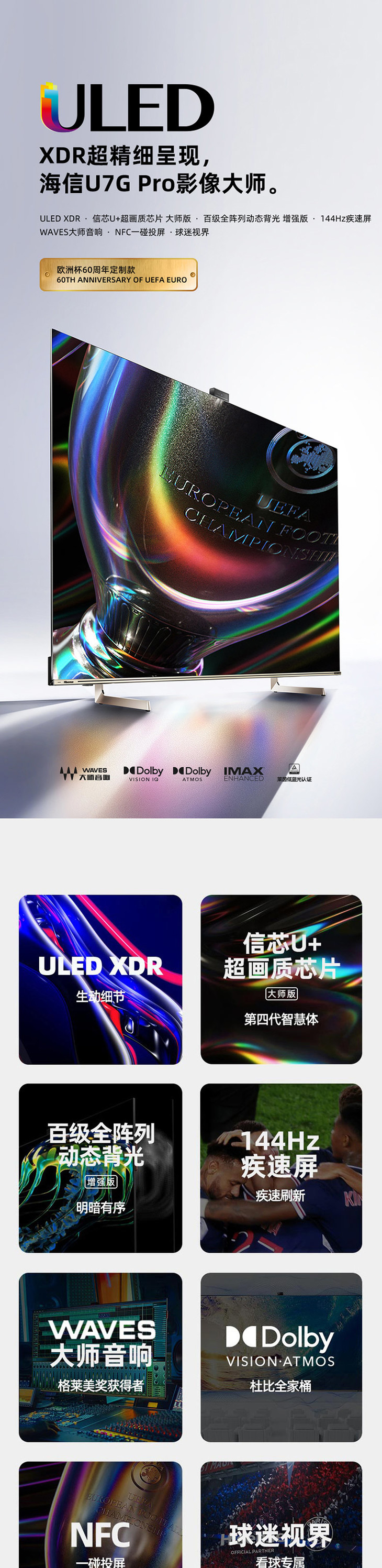 海信(Hisense)ULED XDR电视 65英寸 信芯U+超画质芯片 大师版 65U7G-PRO WAVES大师音响