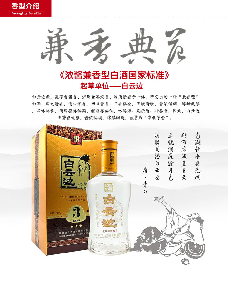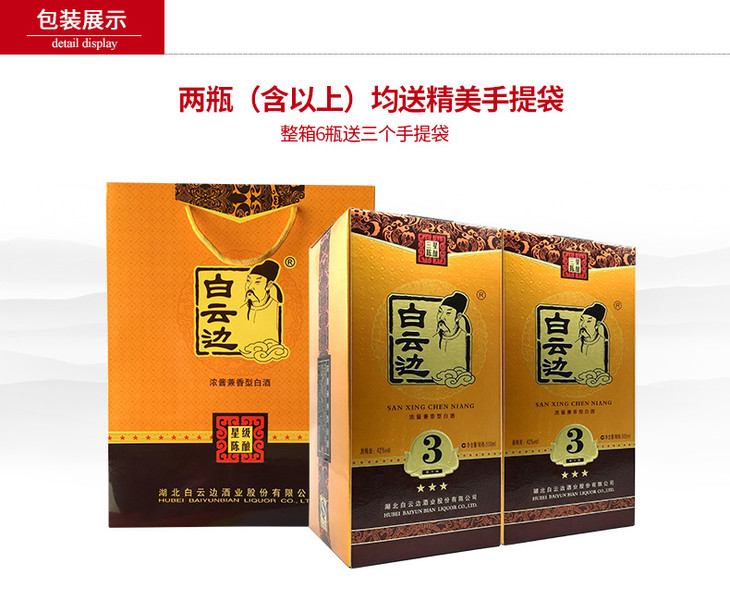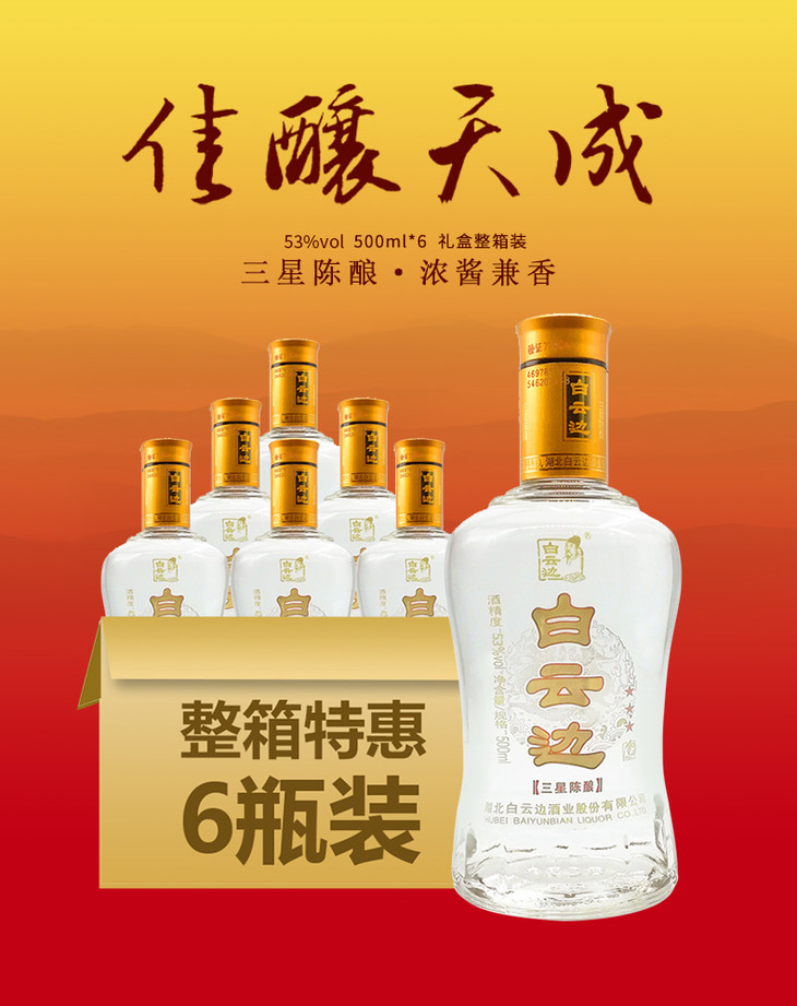 【畅销热卖】白云边3星 42/53度兼香型白酒 整箱500ml*6瓶包邮