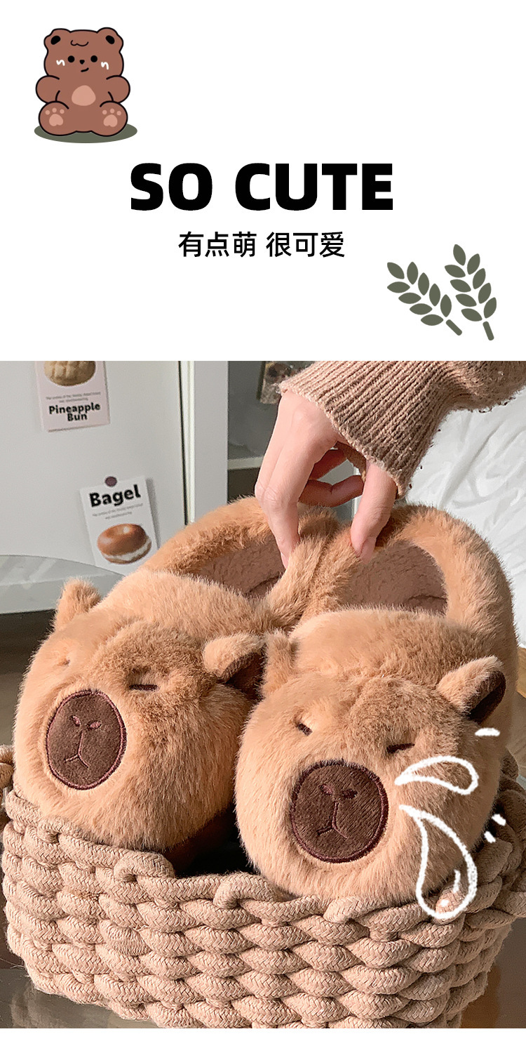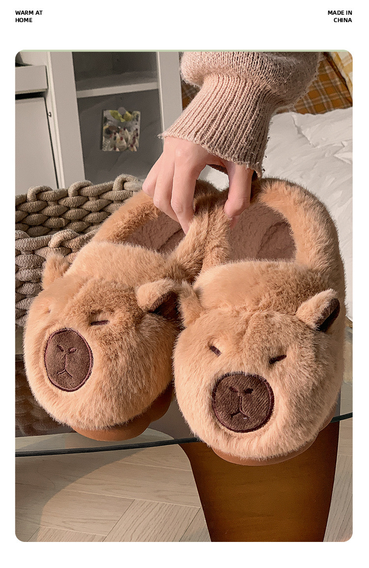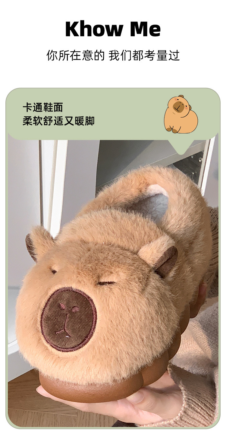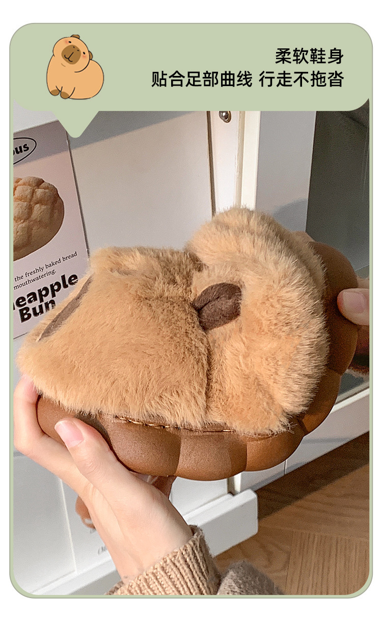 卡皮巴拉棉拖鞋冬季可爱棉拖家用毛拖鞋室内防滑情侣居家包跟棉鞋