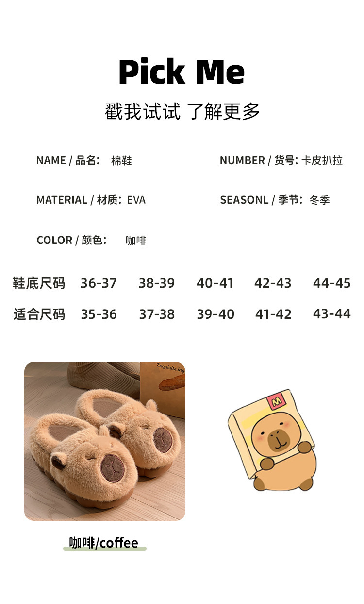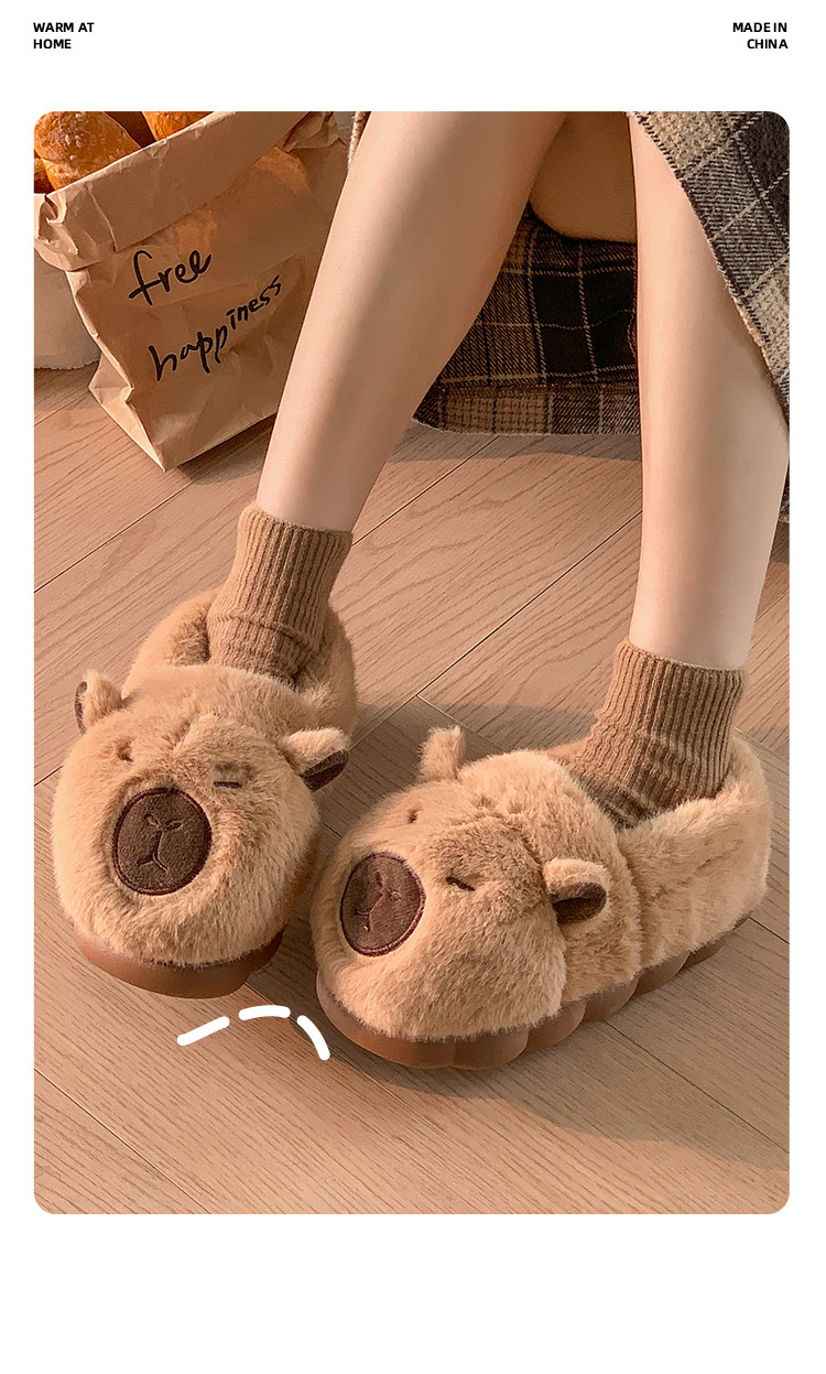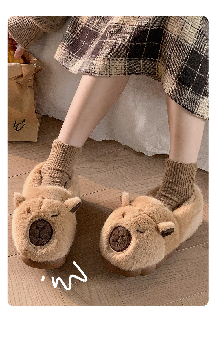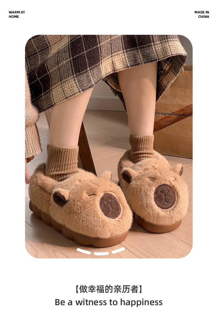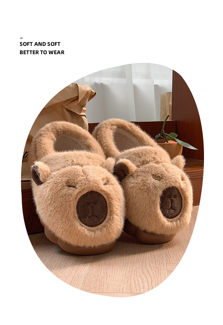 卡皮巴拉棉拖鞋冬季可爱棉拖家用毛拖鞋室内防滑情侣居家包跟棉鞋