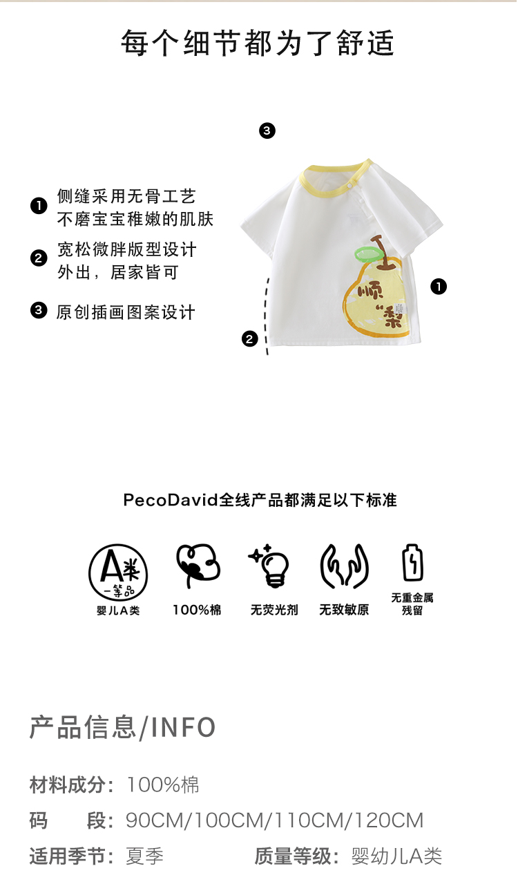 小猪大卫宝宝T恤夏季纯棉卡通印花男童女宝上衣圆领短袖t恤