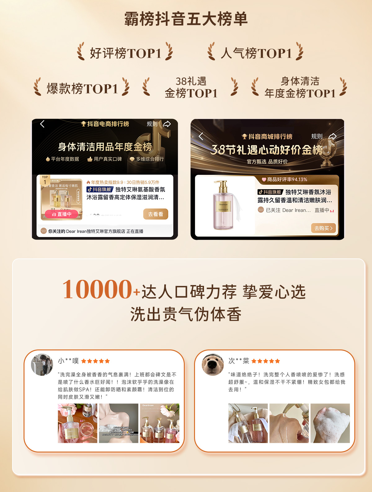 【侯明昊同款丨满2件减20元丨满3件减30元】明星同款推荐!DearIrean独特艾琳保湿清洁馥郁留香不假滑香氛沐浴露350ml(官方自营)